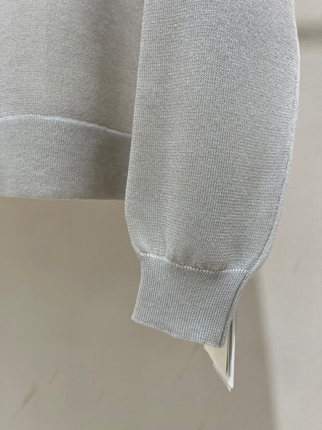 シアー素材に刺繍でロゴを入れたニットトップス。