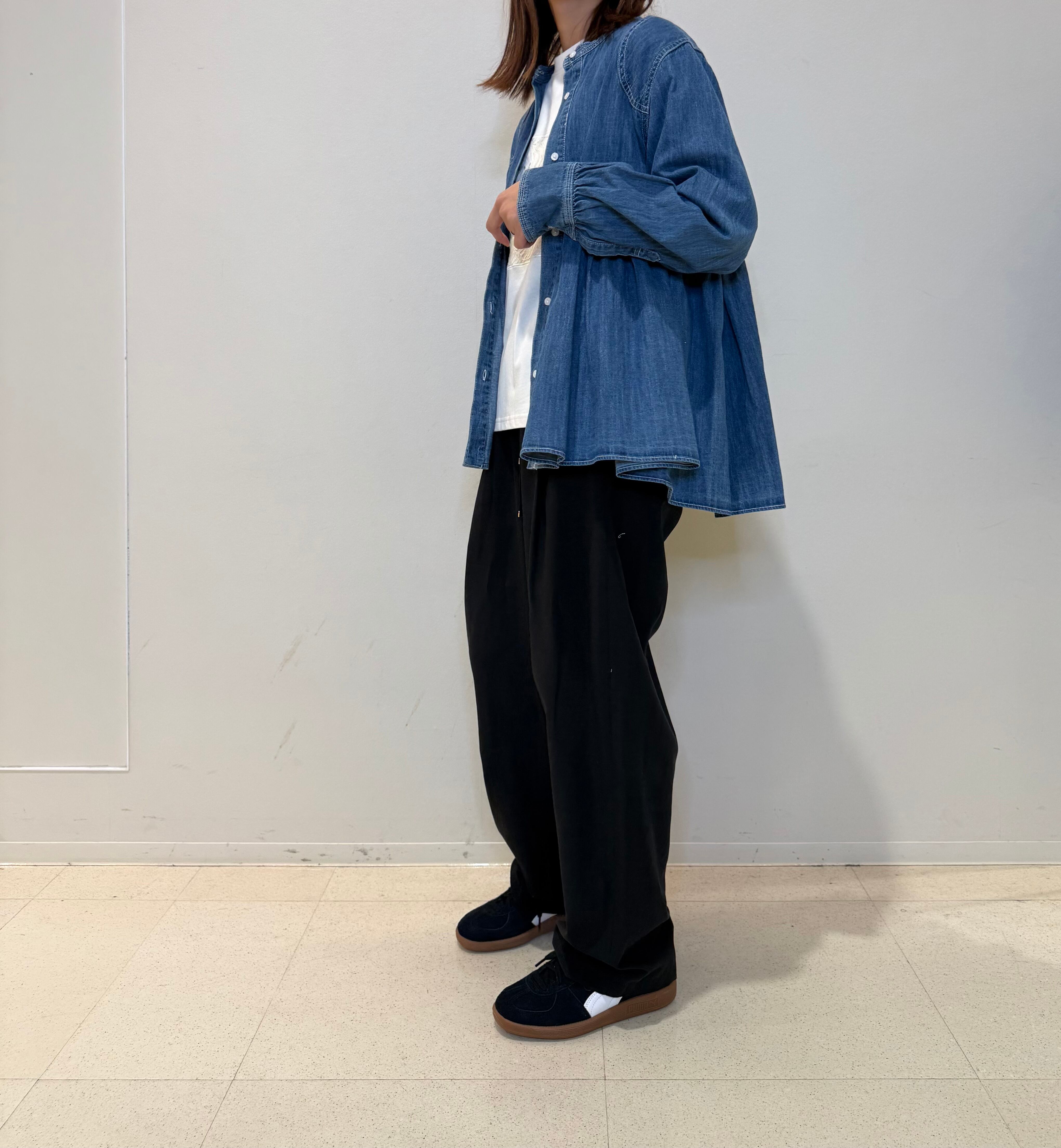 ギャザーフレアデニムシャツ