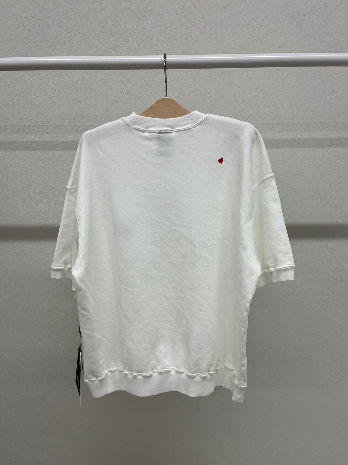 ゆったりとしたシルエットがかわいい、半袖スウェットトップス。強撚糸を使用し、ツイル目に編むことで程よい立体感を表現。ヴィンテージ感のある風合いに仕上げました。