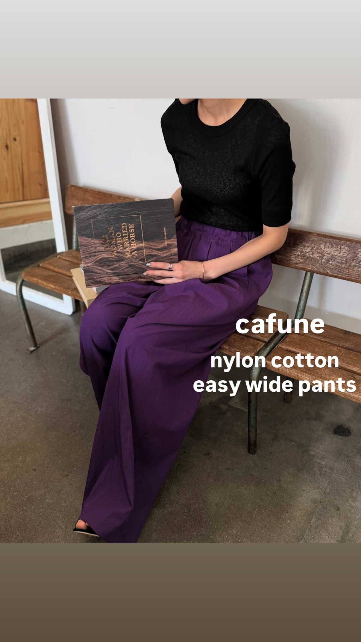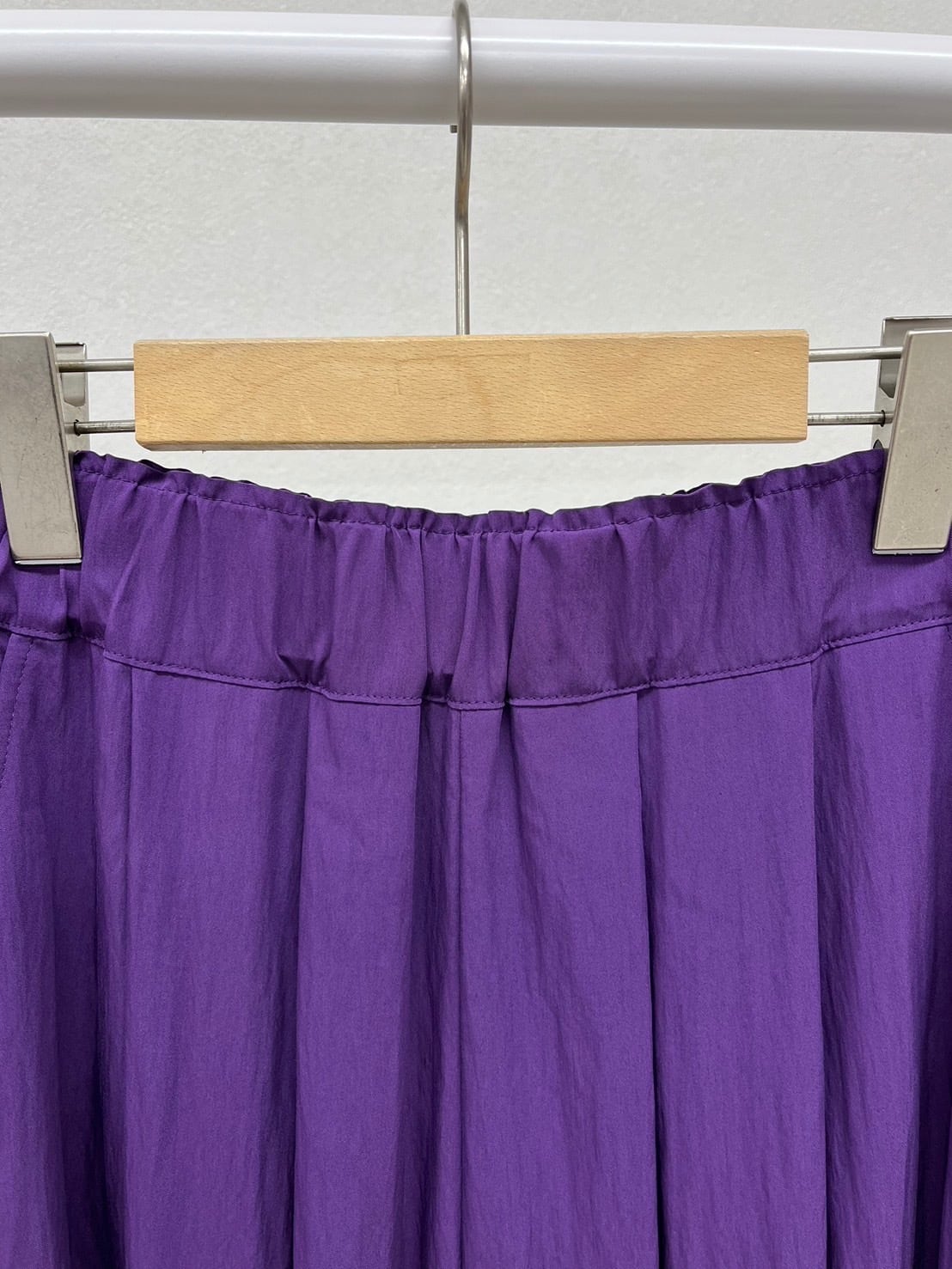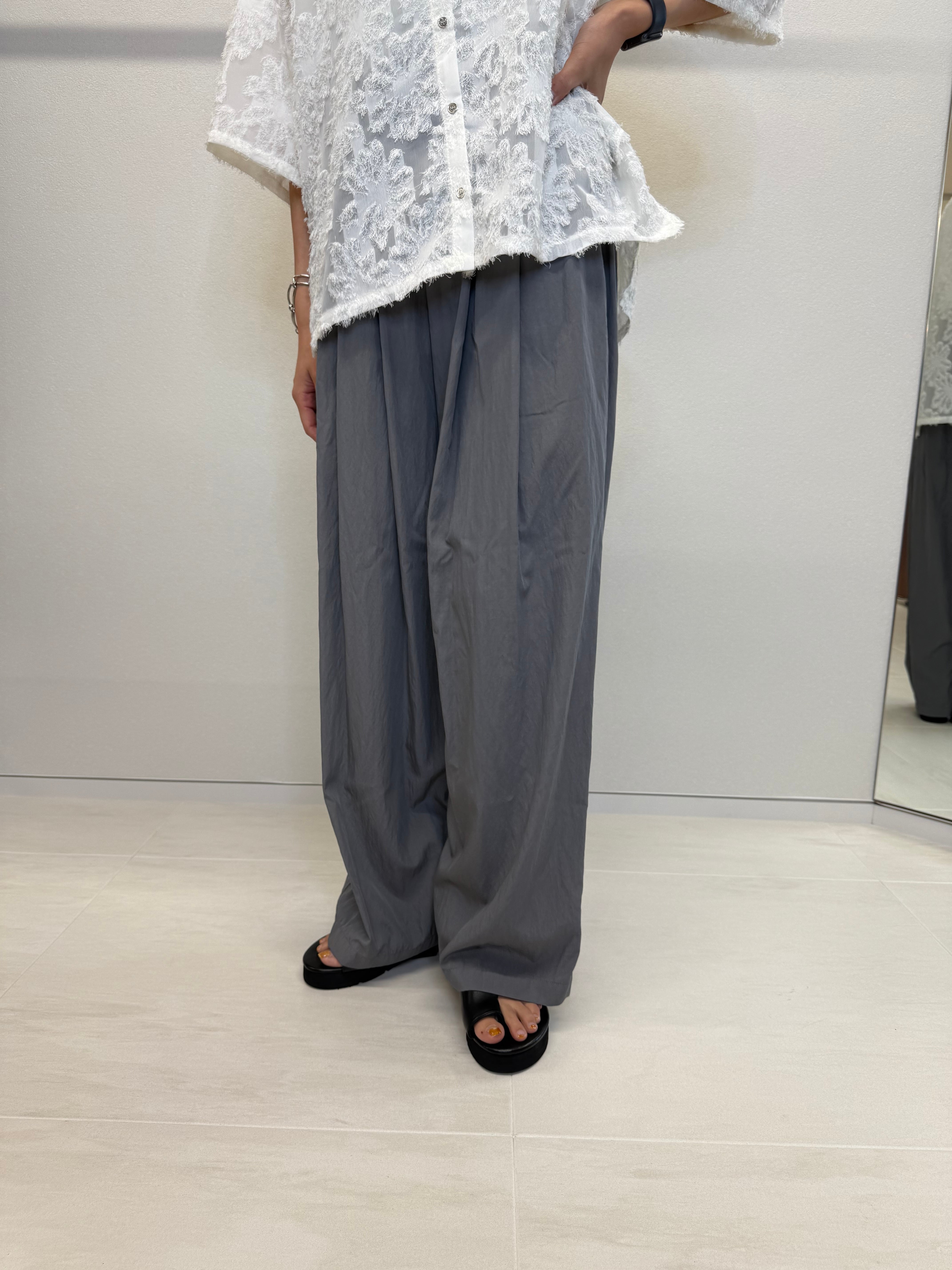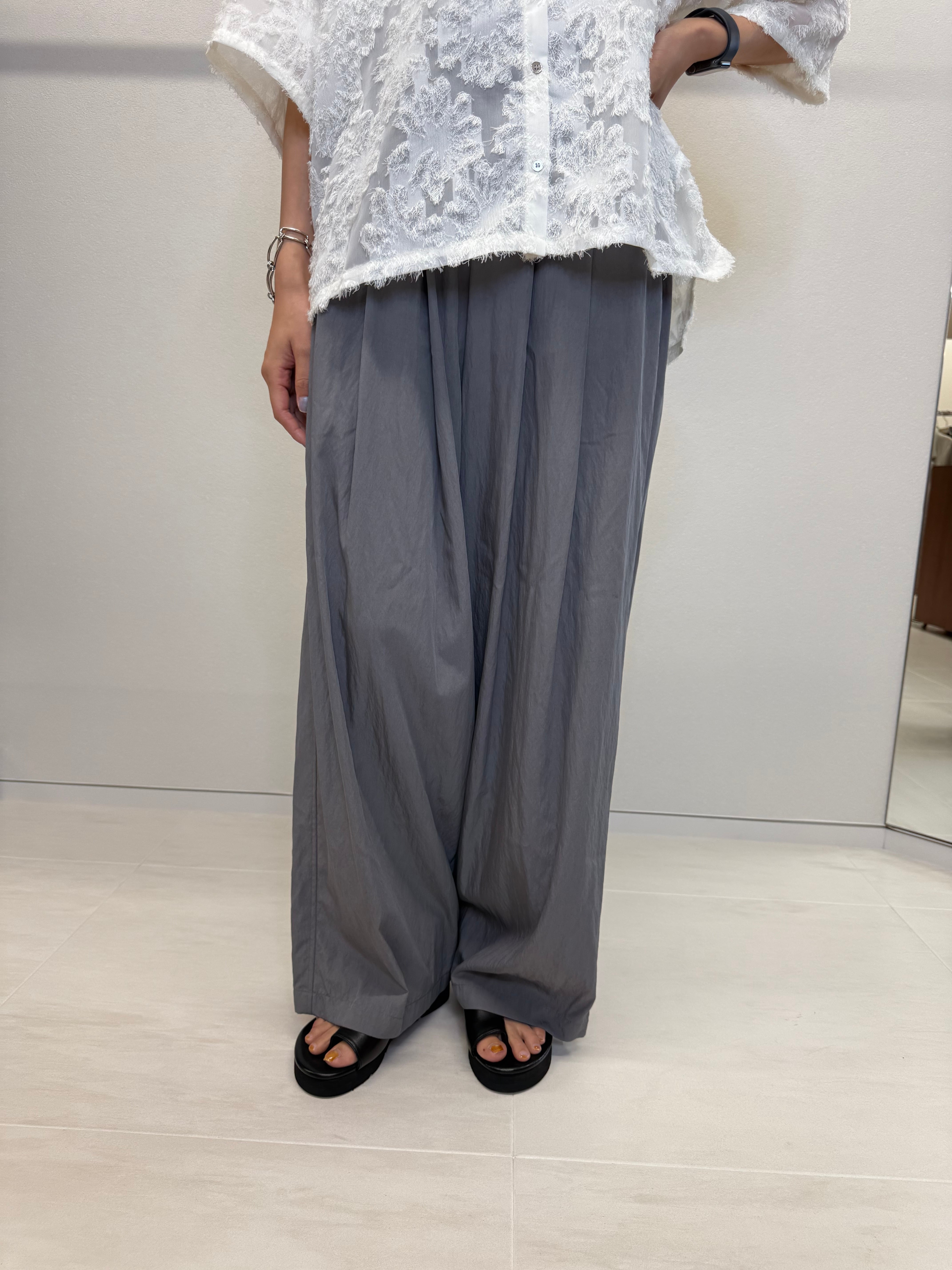 コットンナイロン素材のワイドパンツ
