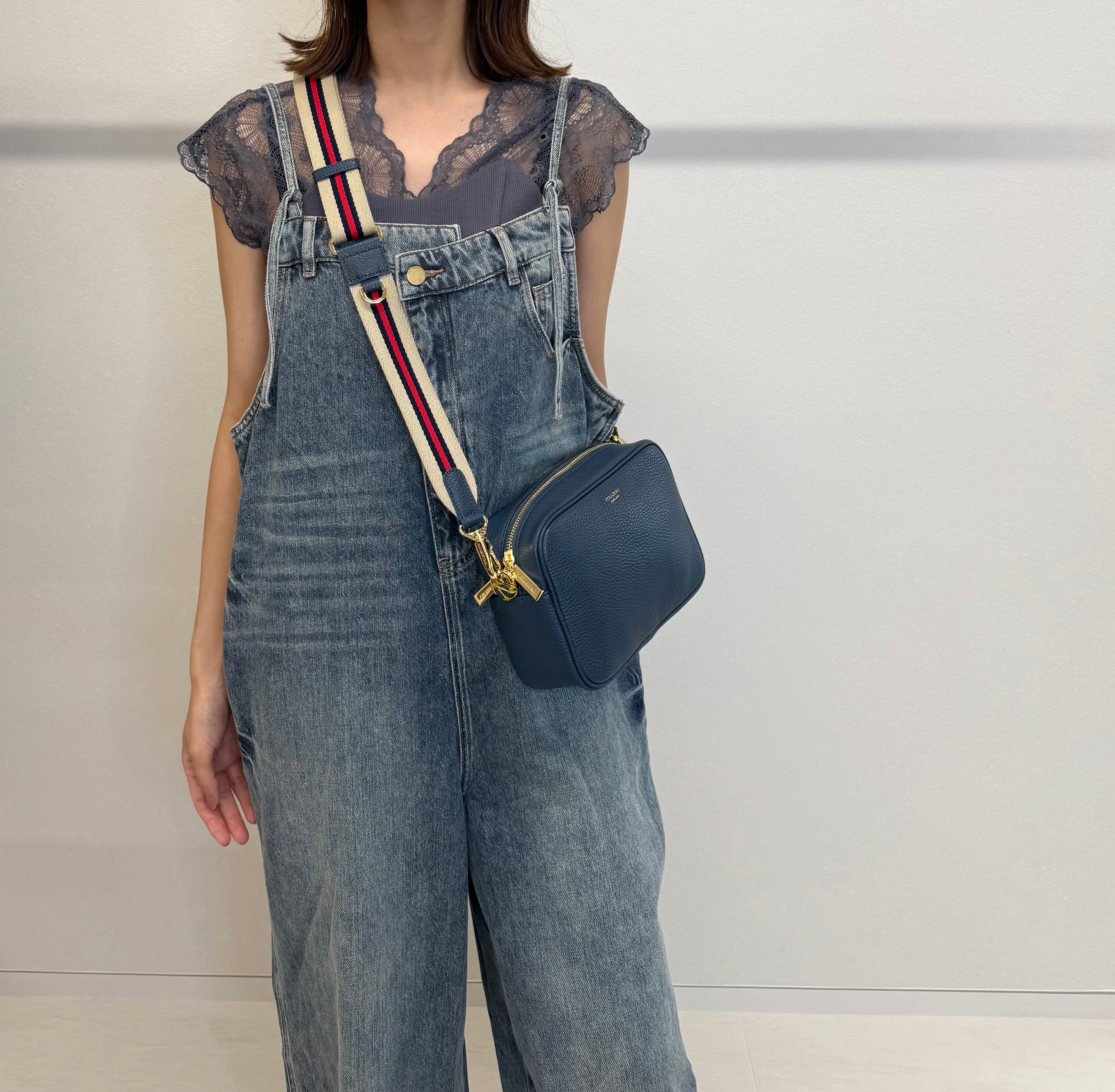 小物が取り付け可能なDカン付きのアイビーテープのショルダー使いがアクセントになっています。