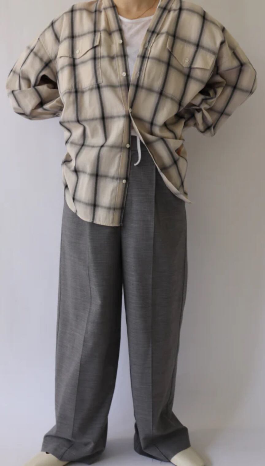 オンブレーチェックノーカラーシャツ
