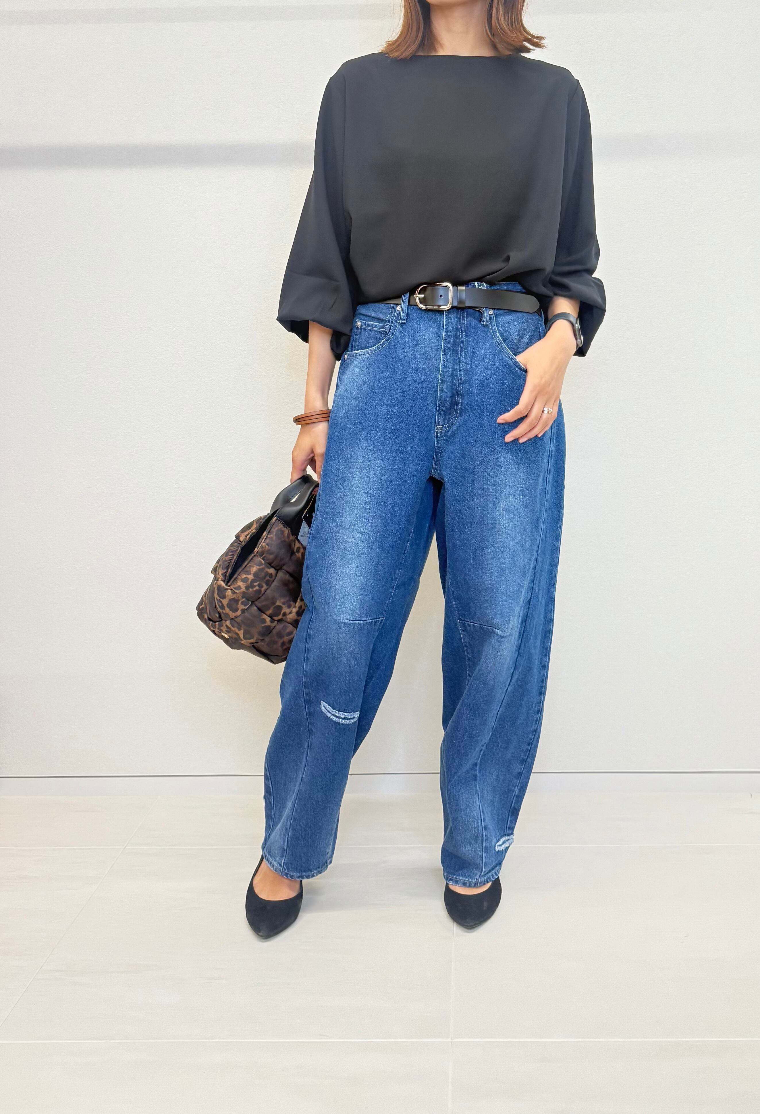 デニムやワイドパンツを合わせたカジュアルスタイルから、スラックスを合わせたきれいめコーデも◎