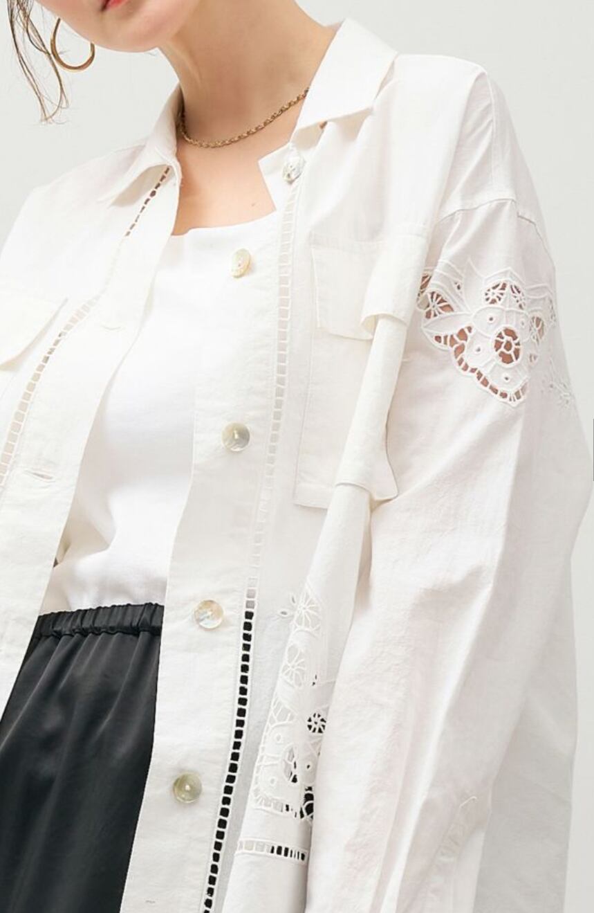 ほっこりしたりナチュラルになりがちな刺繍ですが、ハシゴレースを組み合わせるなどして大人っぽく着こなせるようにこだわりました。