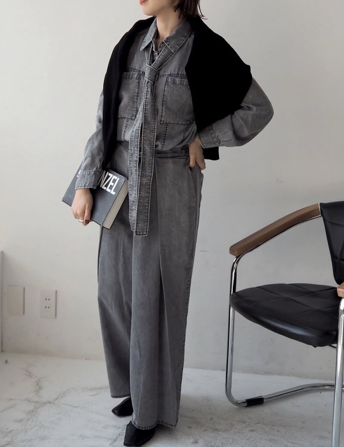 同素材の「R772706 ボウタイ2WAYテンセルデニムシャツ」とセットアップに着るのも◎。
