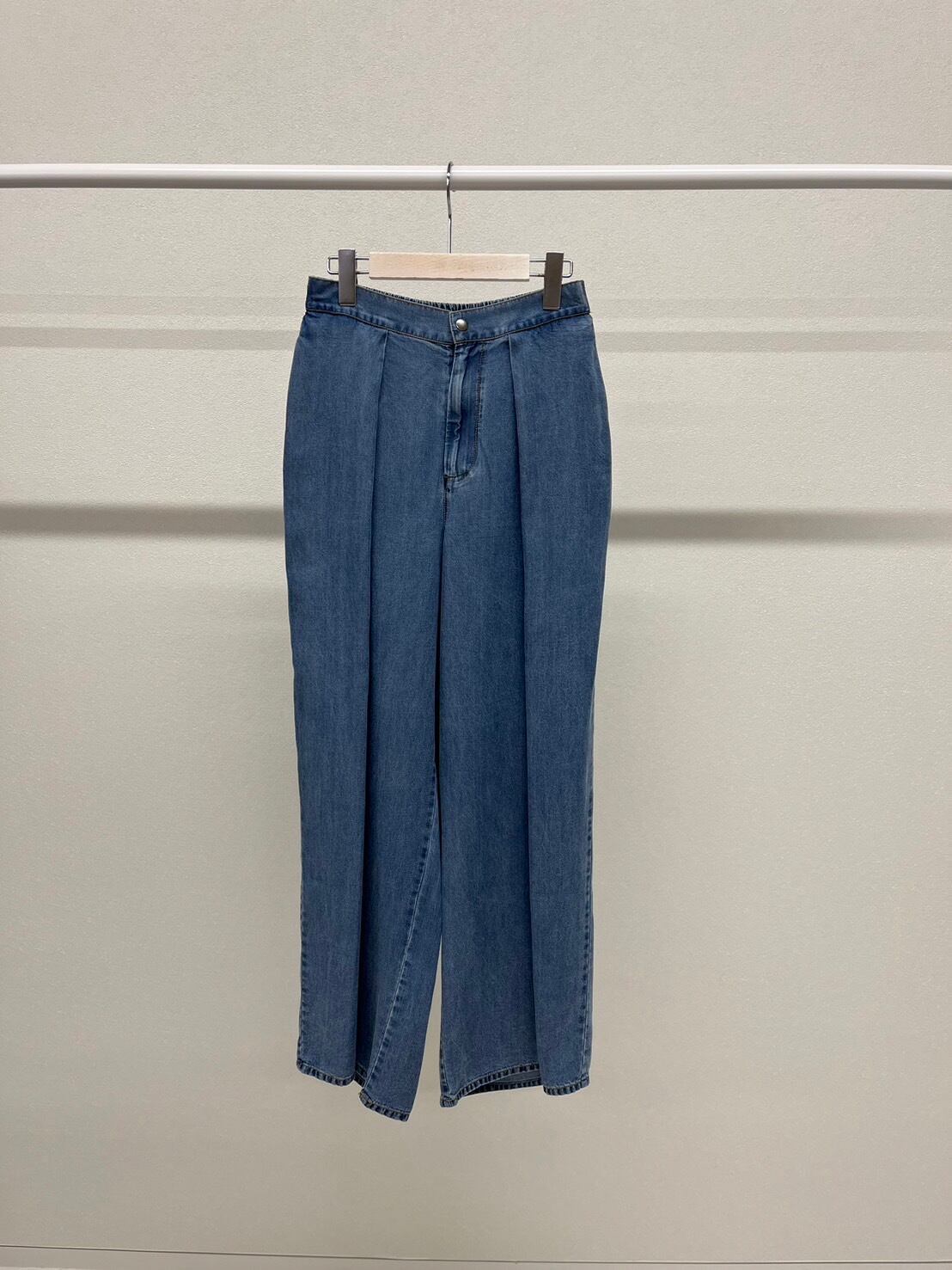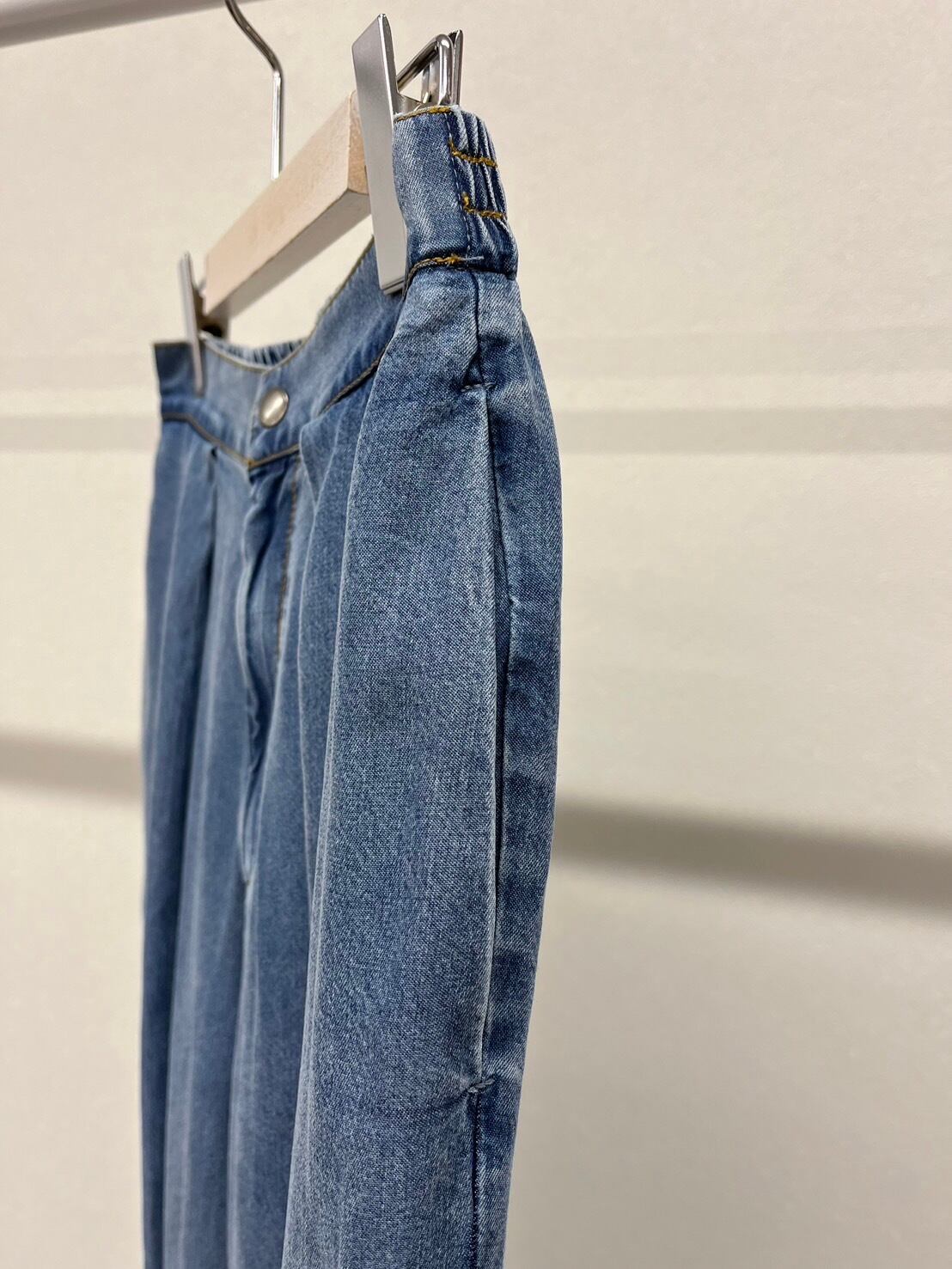 テンセル素材の落ち感が女らしく着れるデニムパンツ。