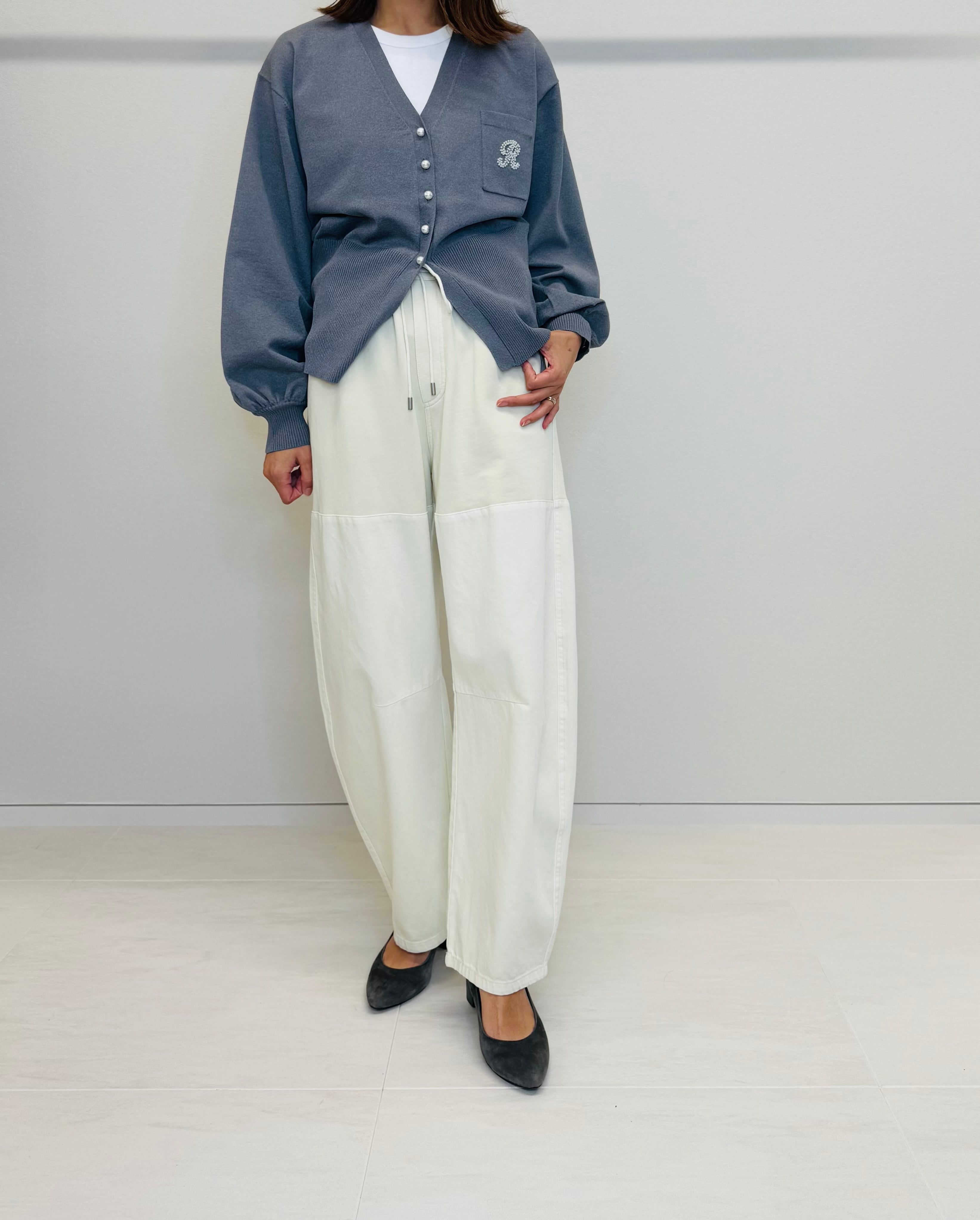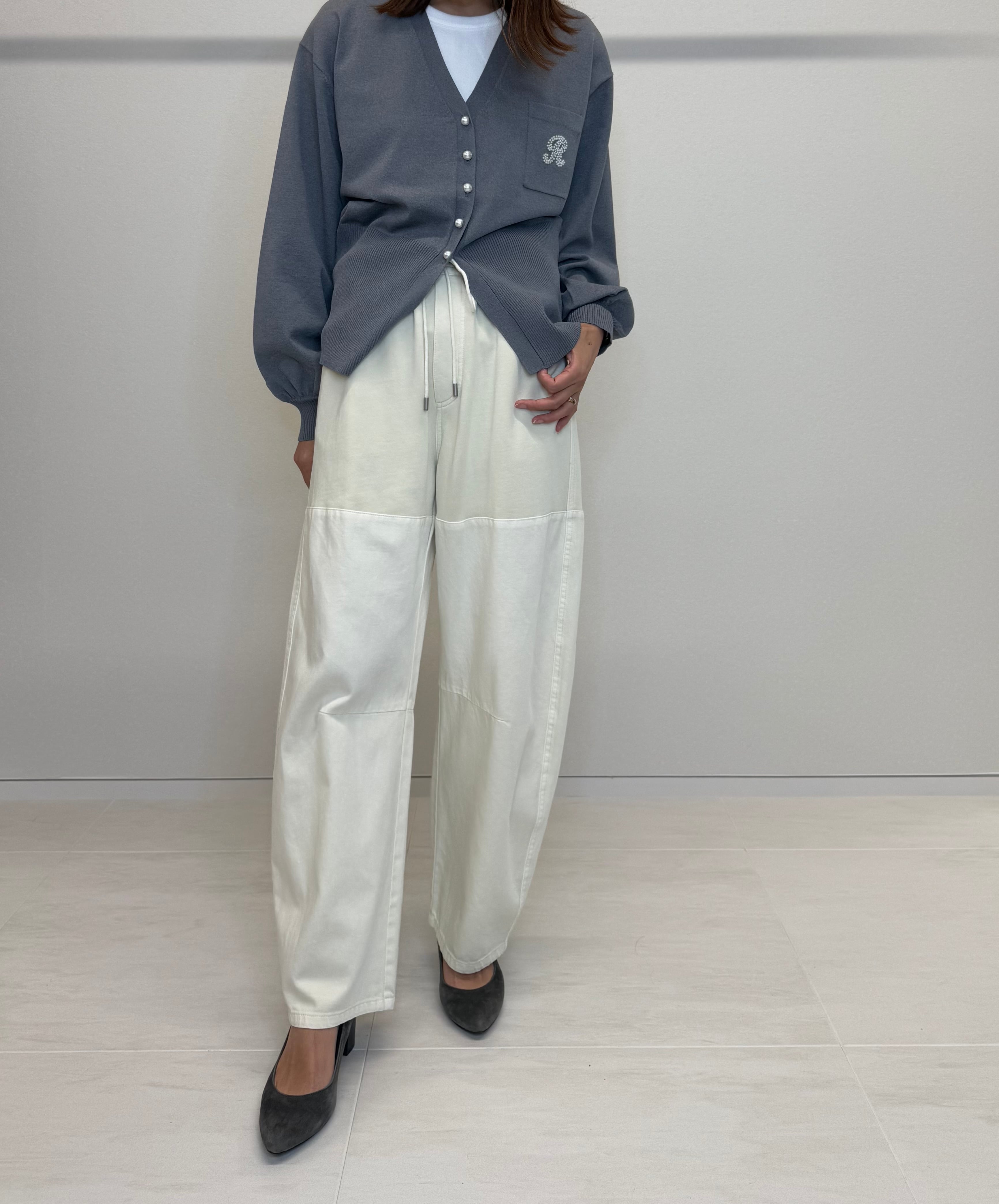 左胸には、まるでブローチのように見える"R”のビジュー刺繍をワンポイントで施し、シンプルな