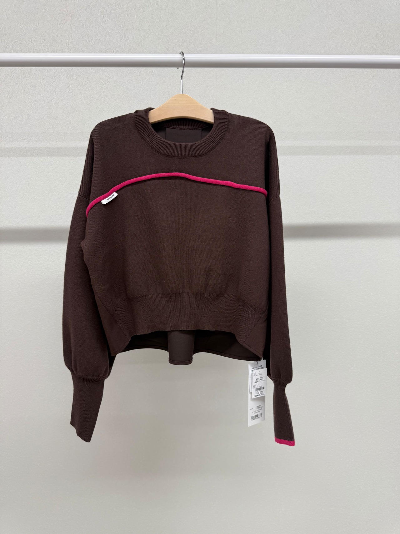 胸元のラインと背面の配色が映えるニットプルオーバー。