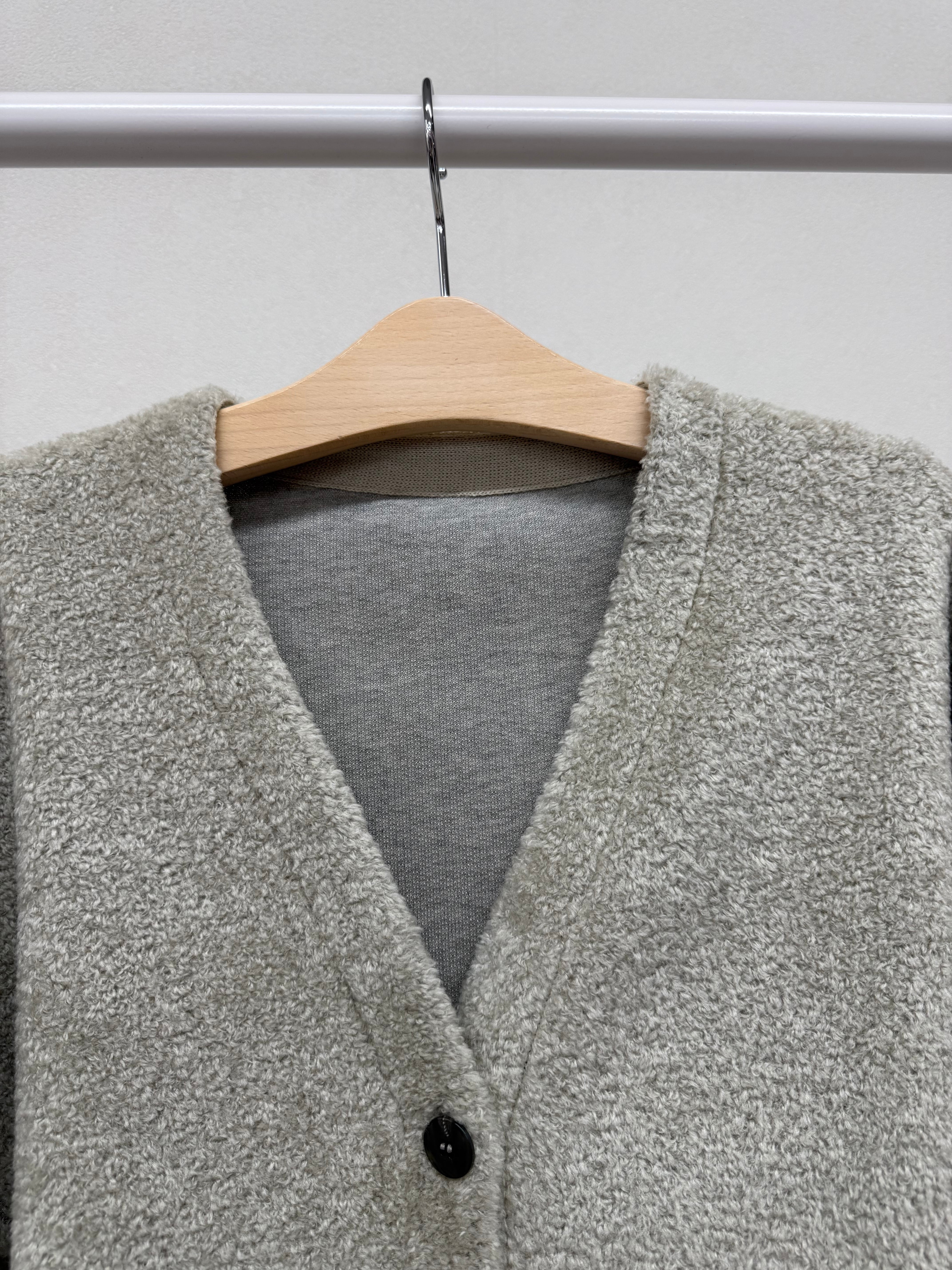 ふわふわとしたプードルのようにカールしたボア素材が可愛らしいカーディガン。