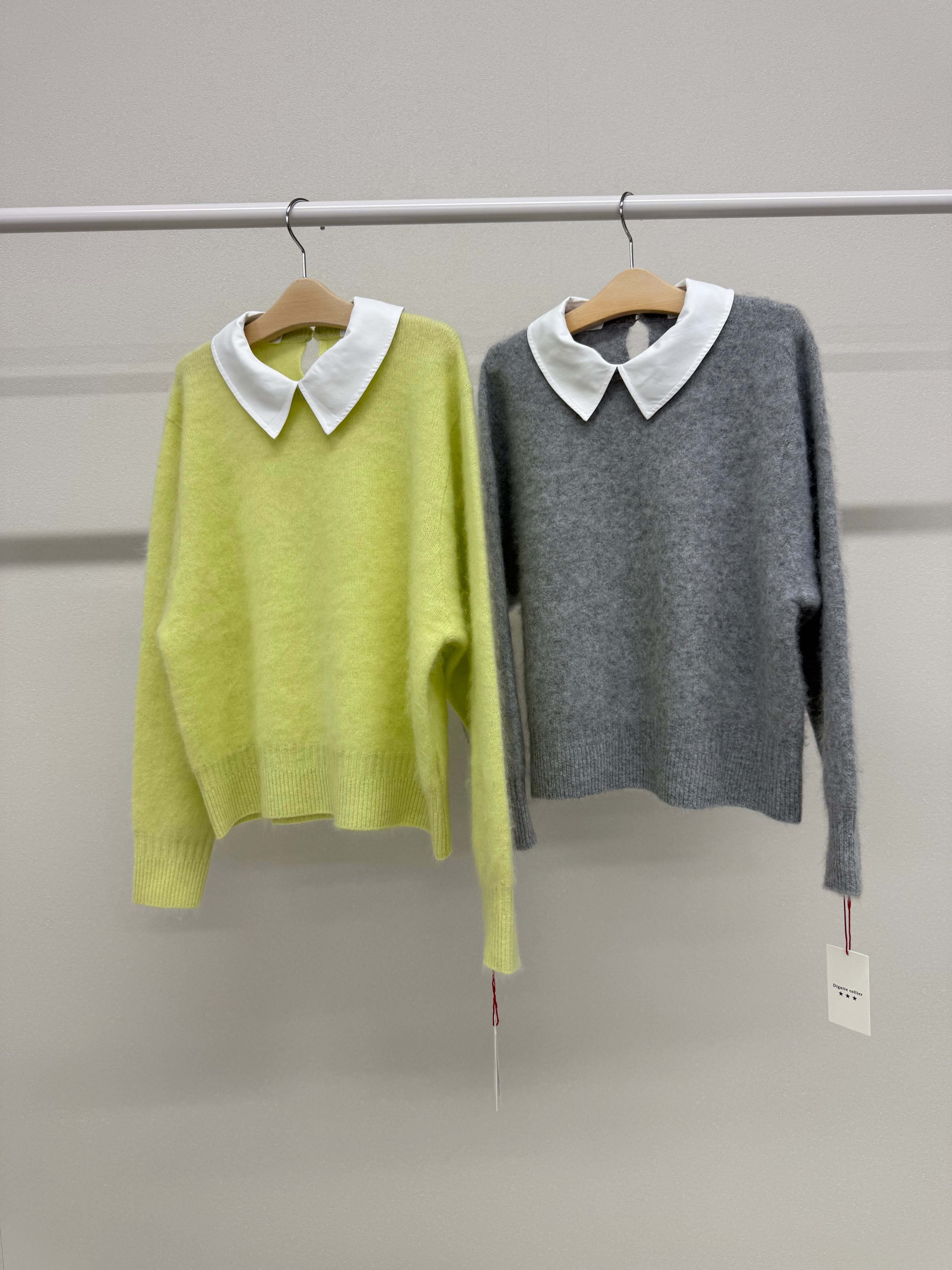 ウールミンク加工襟付きニット