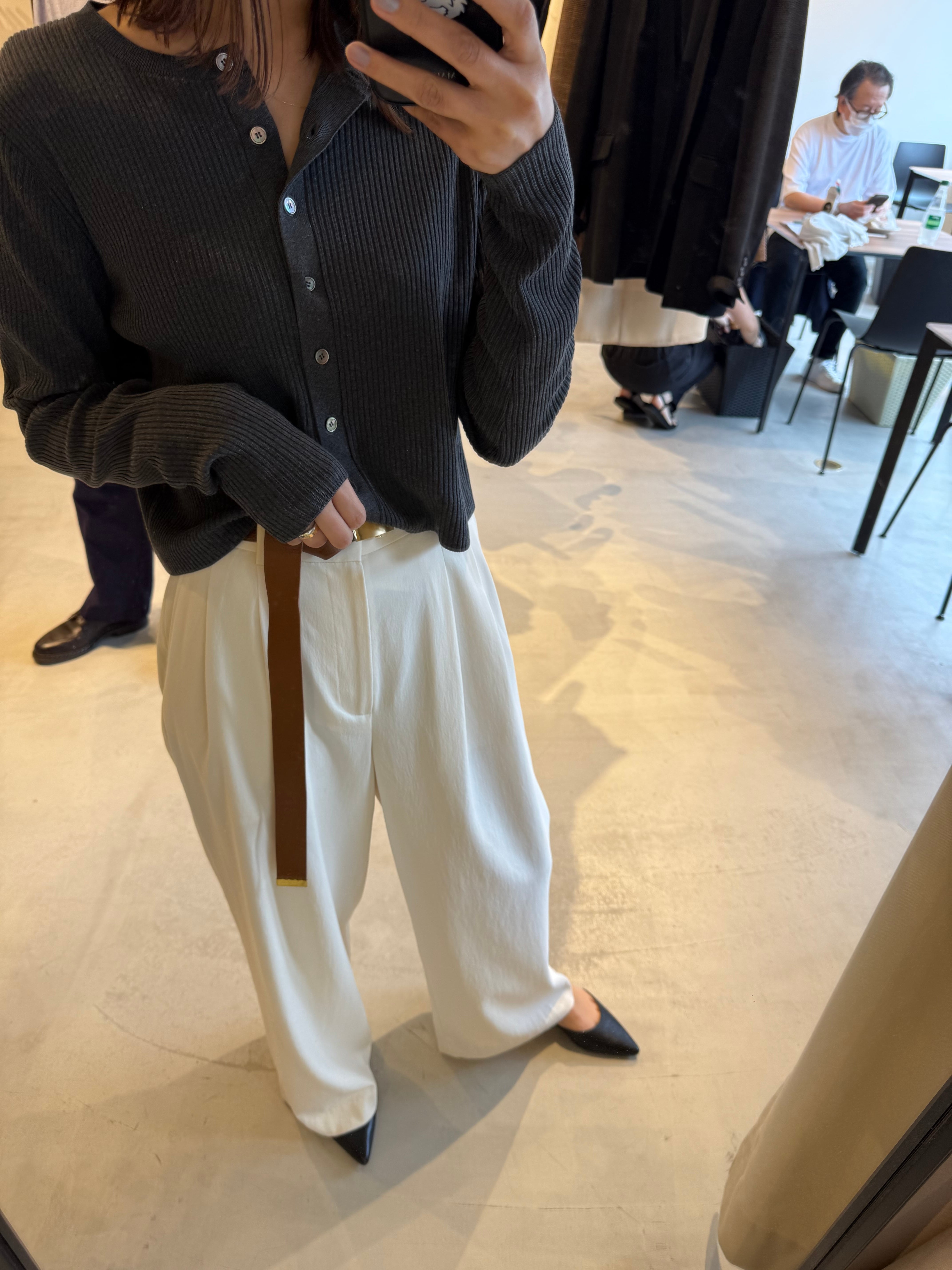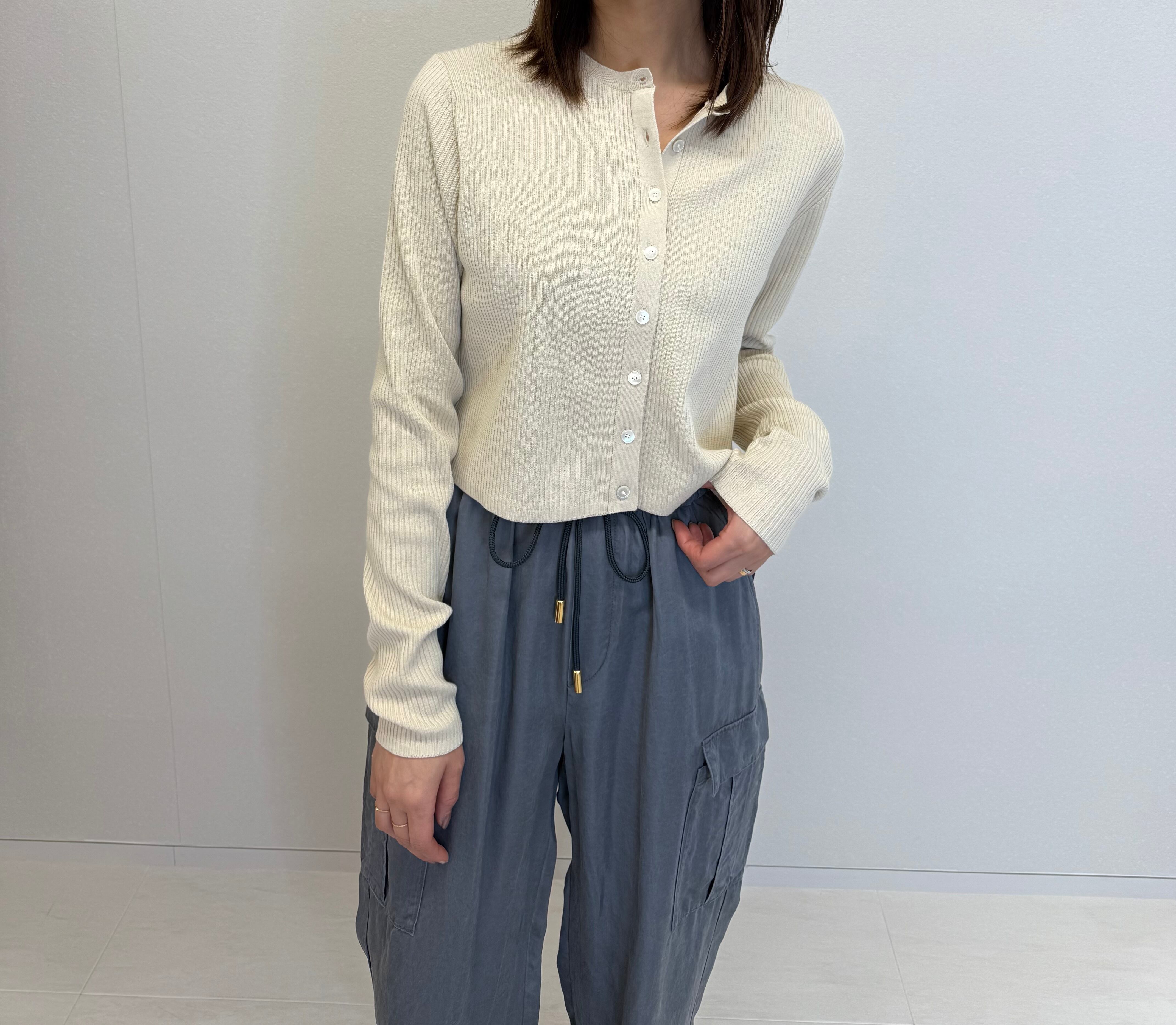 大人のリブショートカーディガン。
