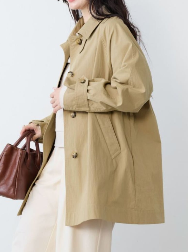 シンプルなデザインの程よい丈感がどんなボトムスとも合わせやすいコートです。