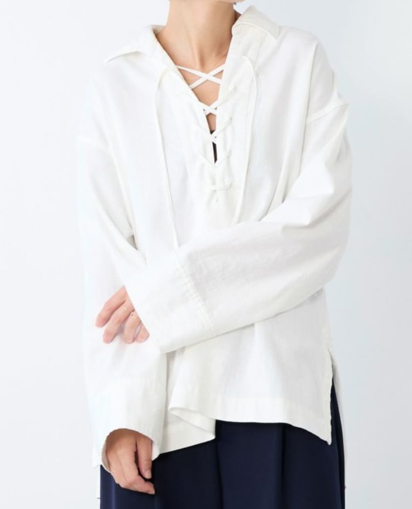 フロントのレースアップデザインがアクセントになったブラウス。