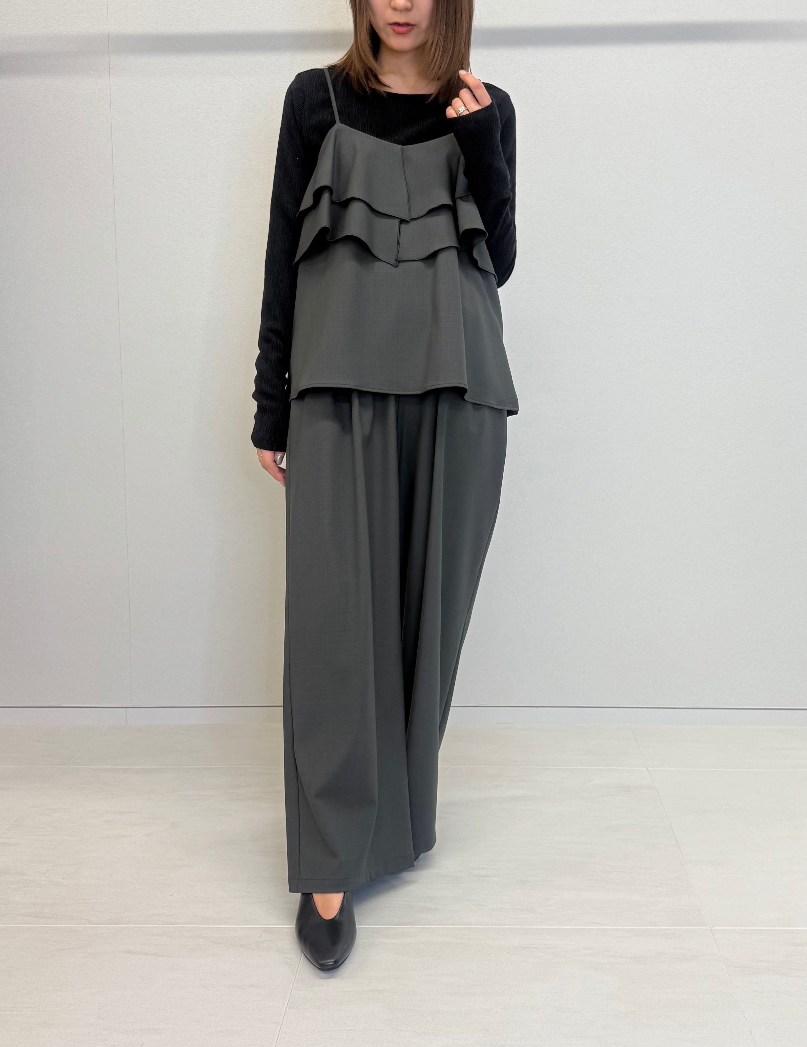 同素材のフリルキャミソールと