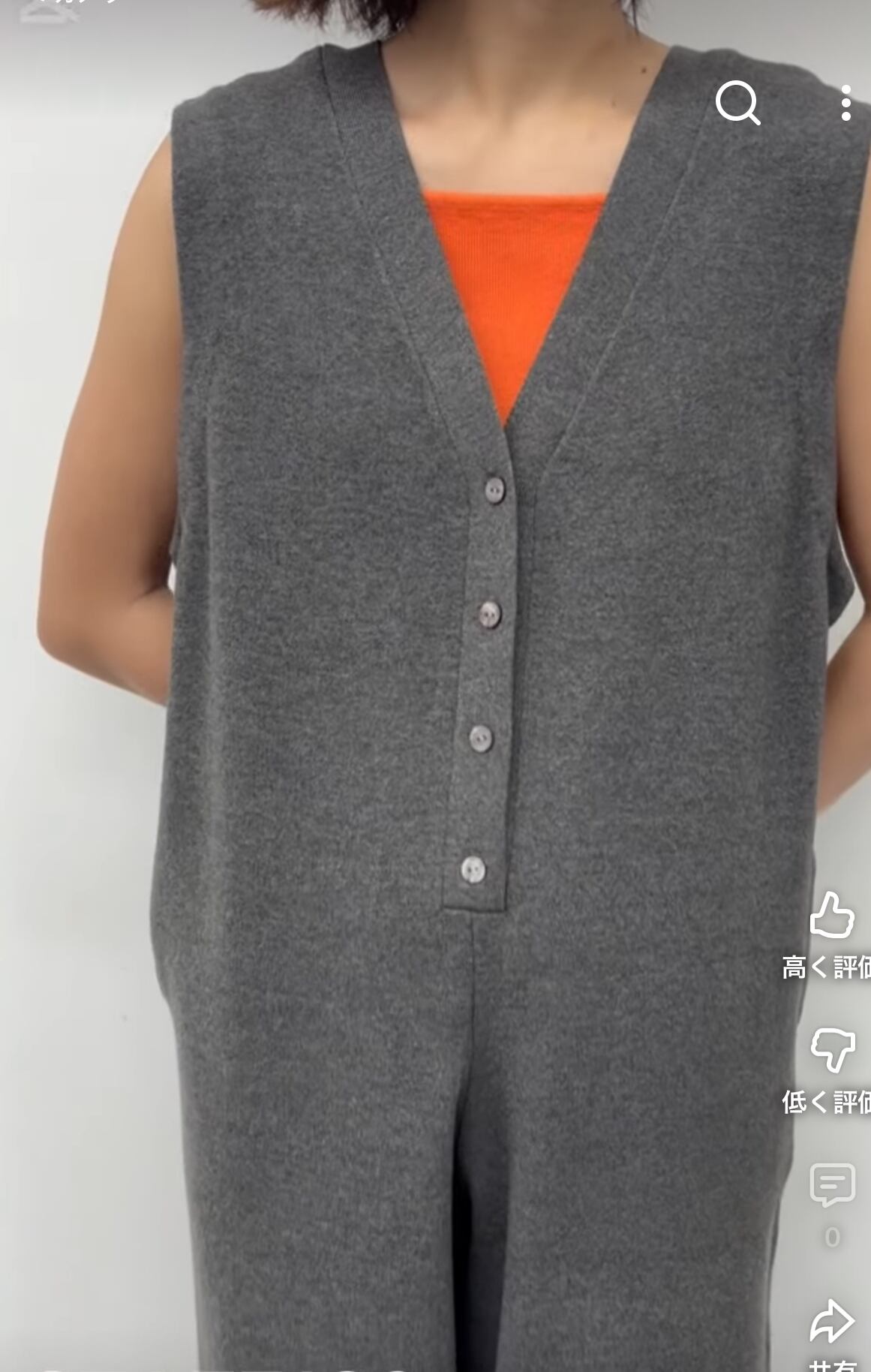 深めのVあきと、フロントボタンの仕様でスッキリした印象に。