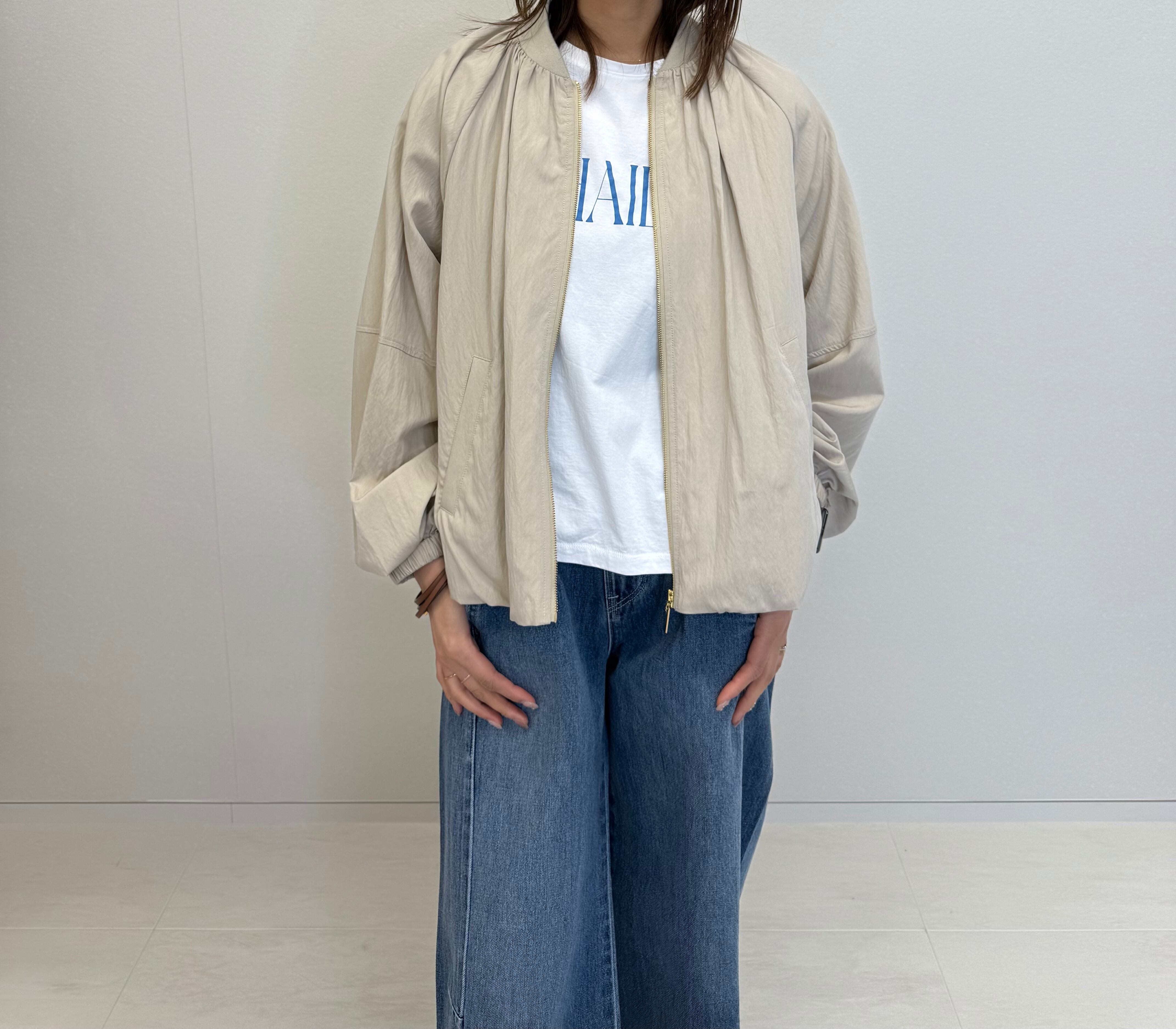 丸みのあるシルエットで女性らしさをプラスしたMA-1ライクなブルゾン。