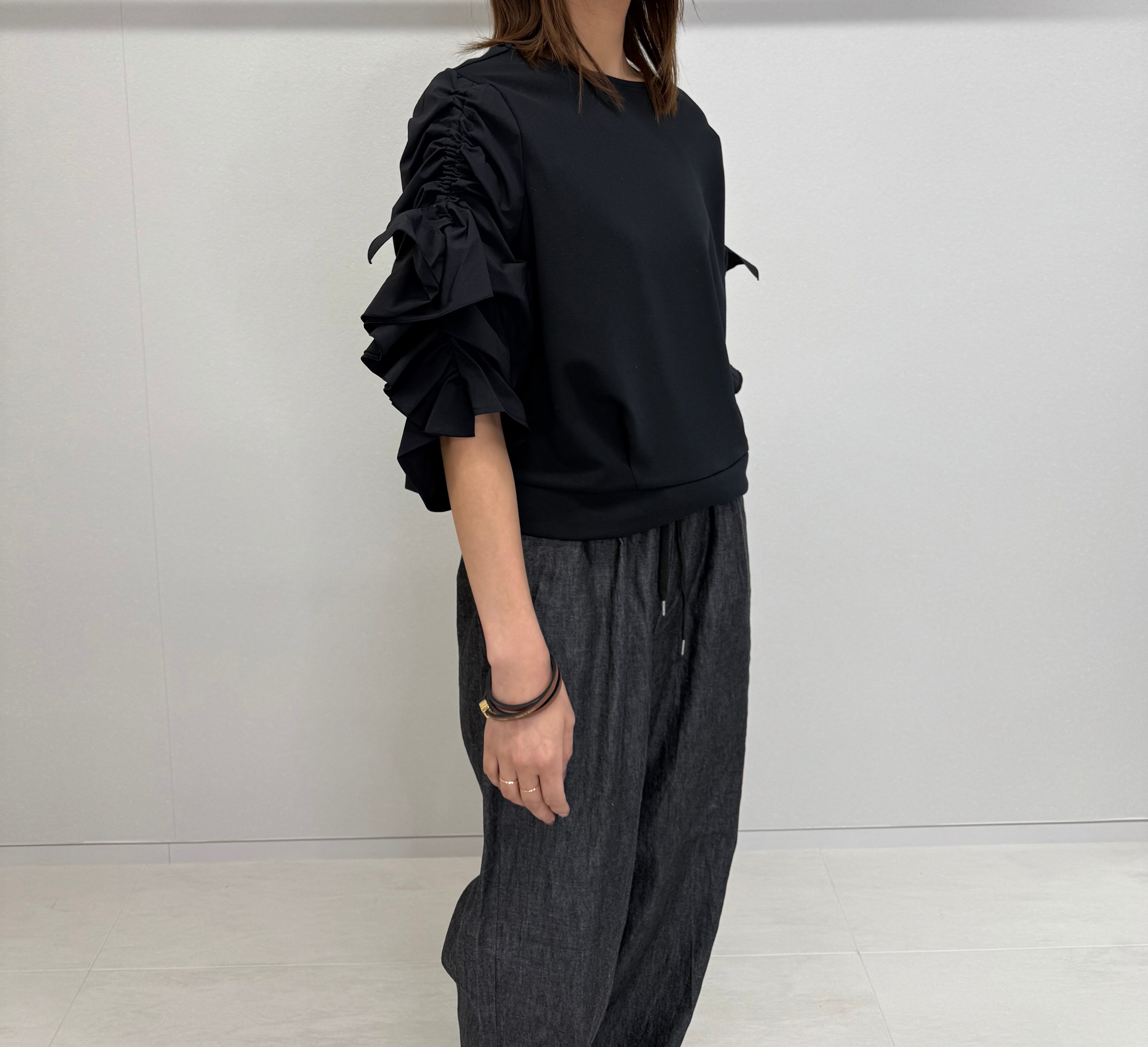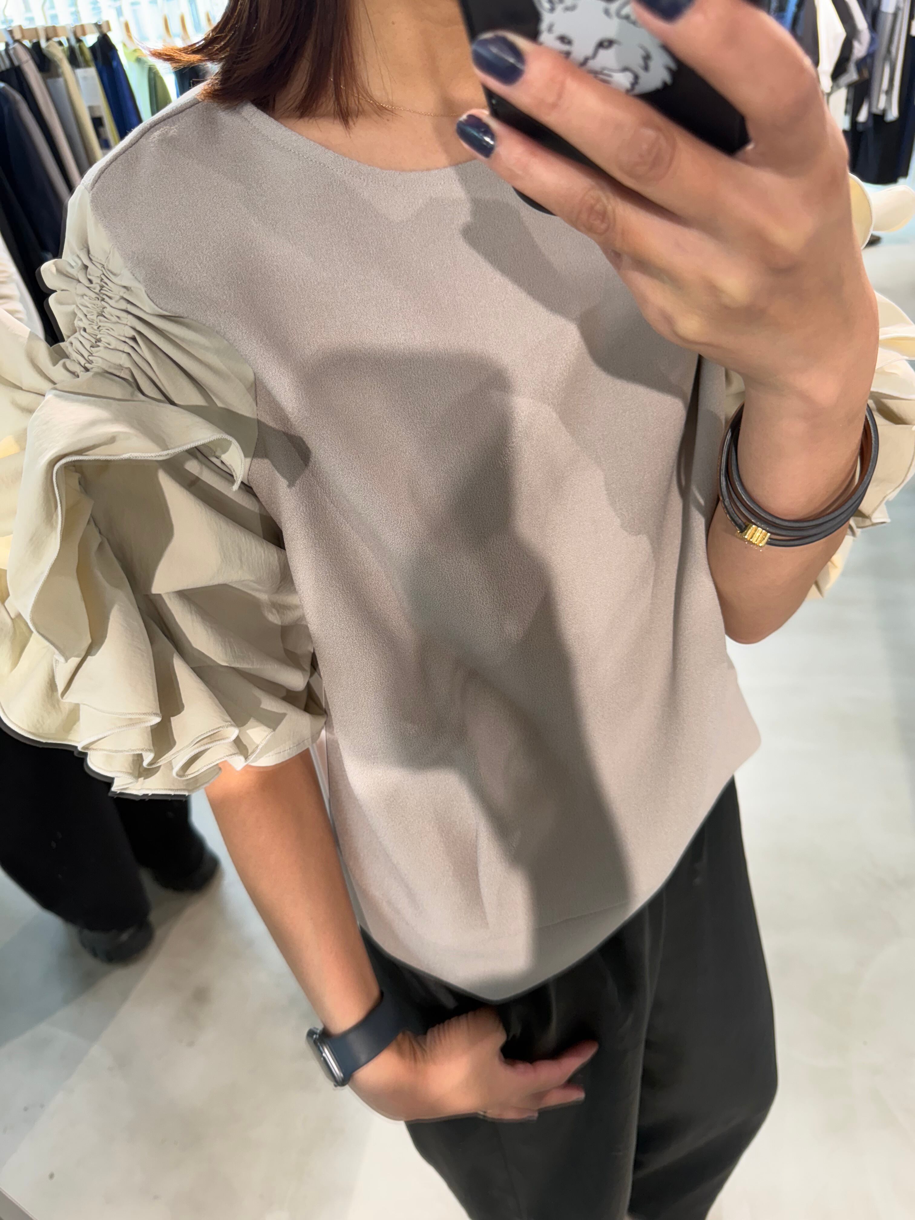 フリルはギャザー分量を調節できる仕様で、シーンや気分に合わせて“甘さ”をコントロールできる、着映えトップスです。
