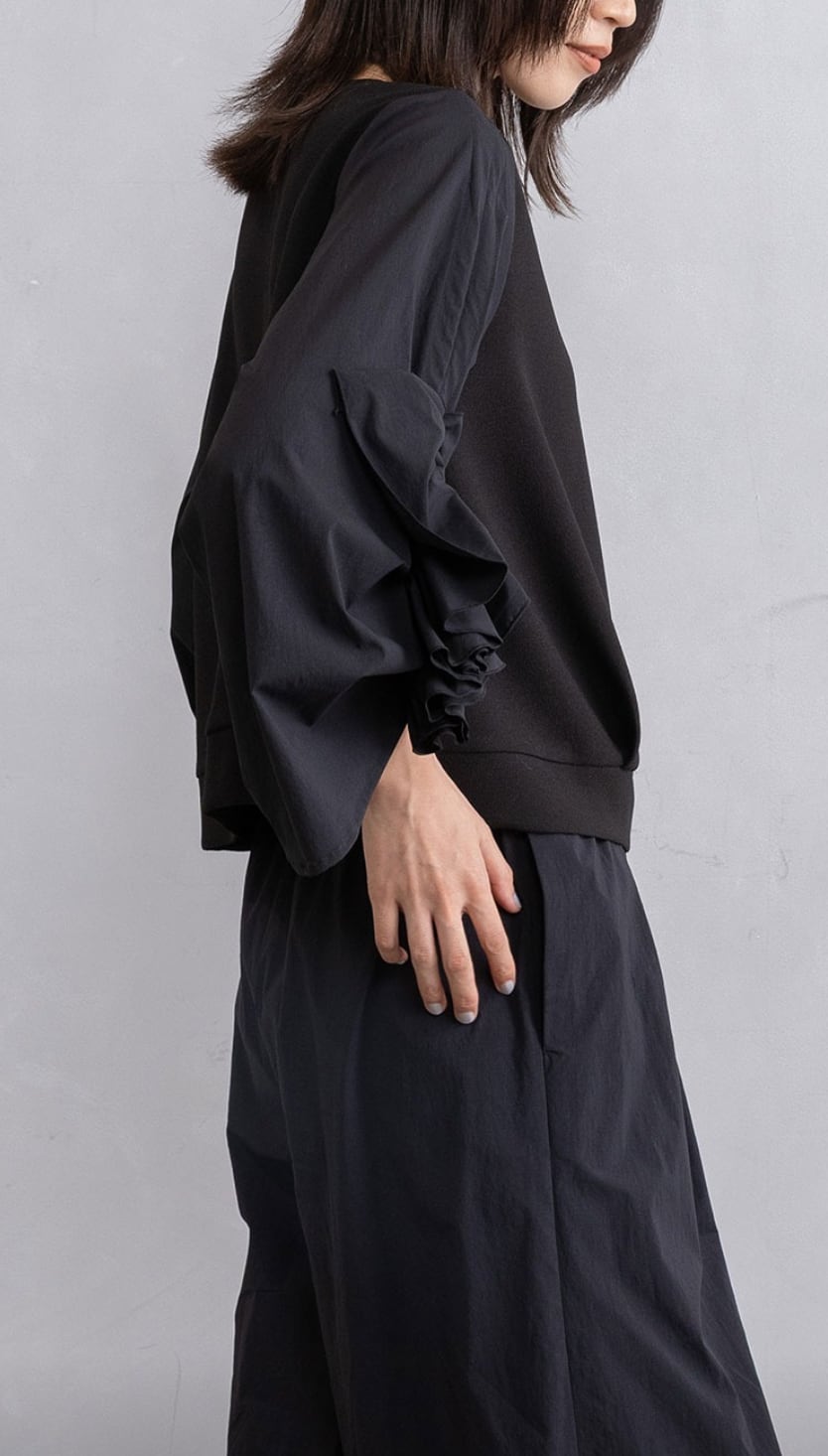 袖にたっぷり寄せたフリルギャザーが