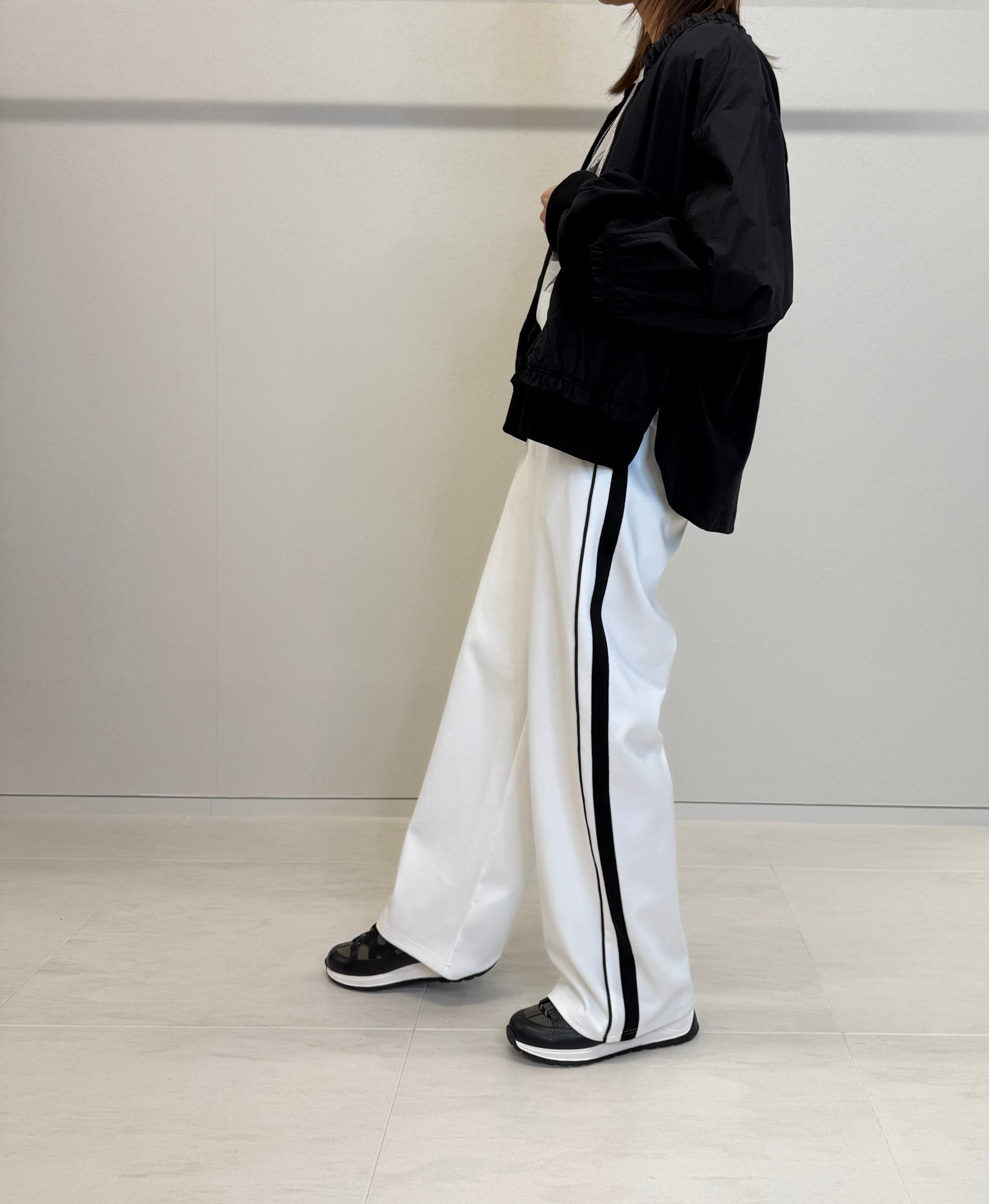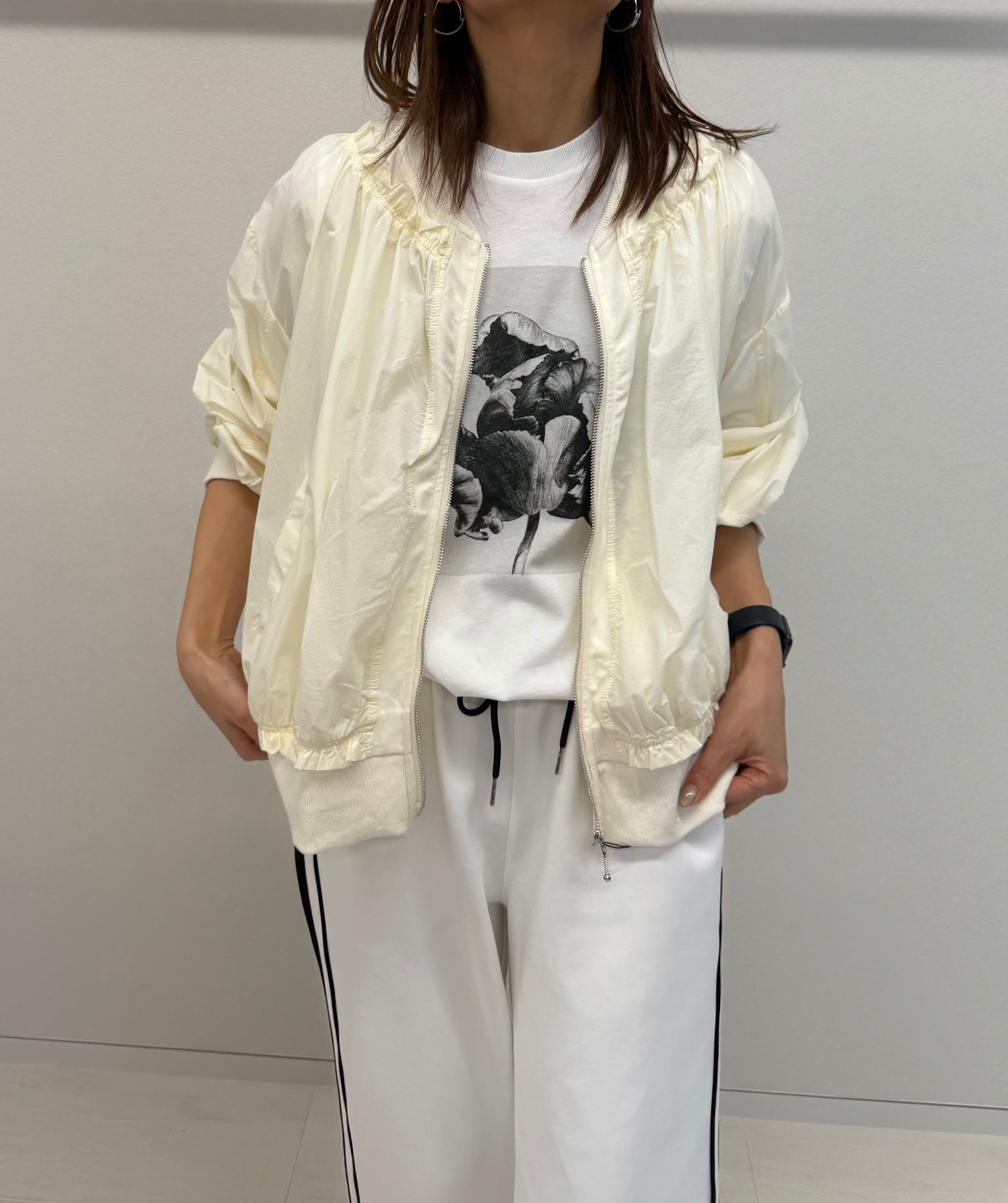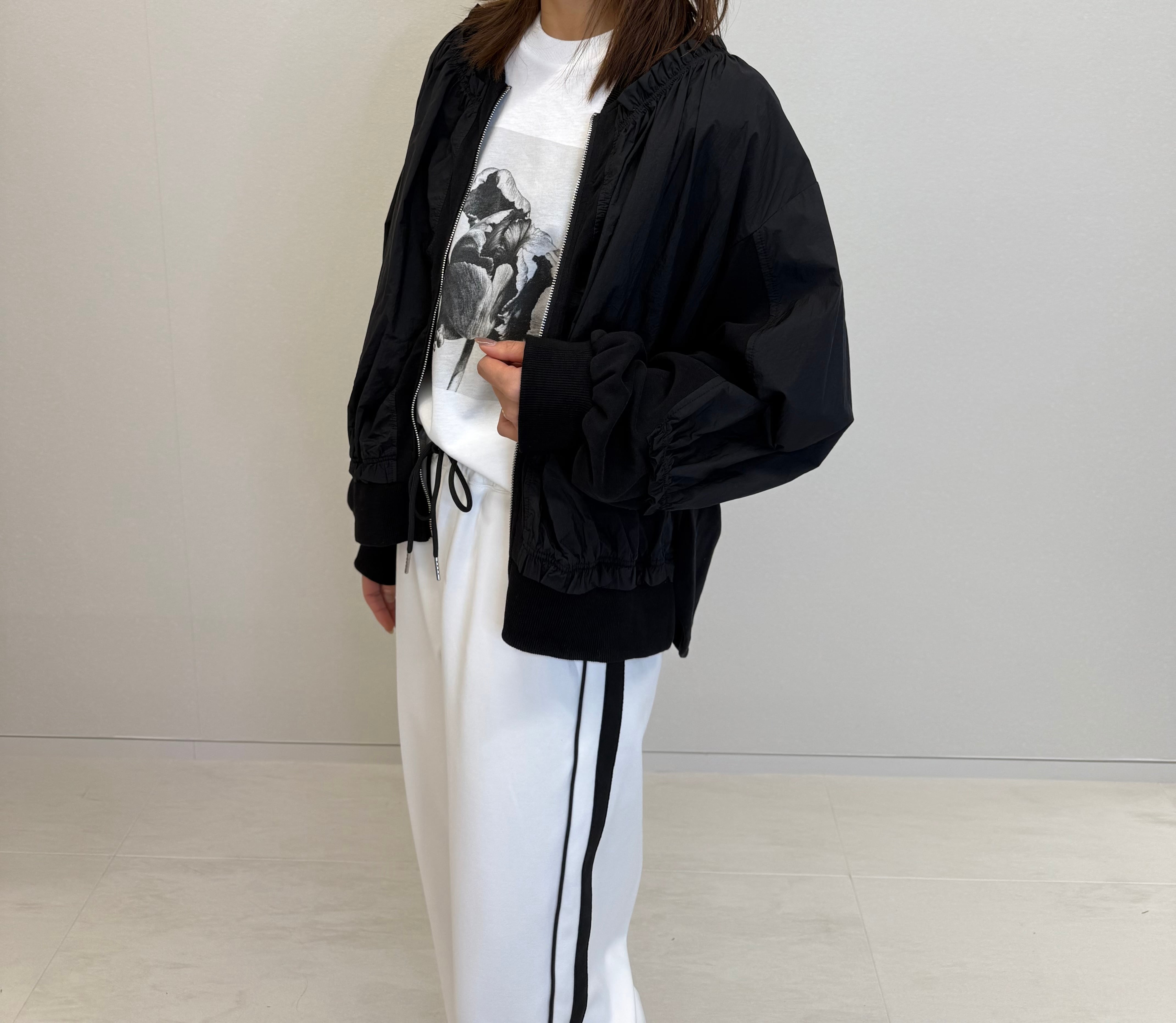 異素材切替フリルブルゾン