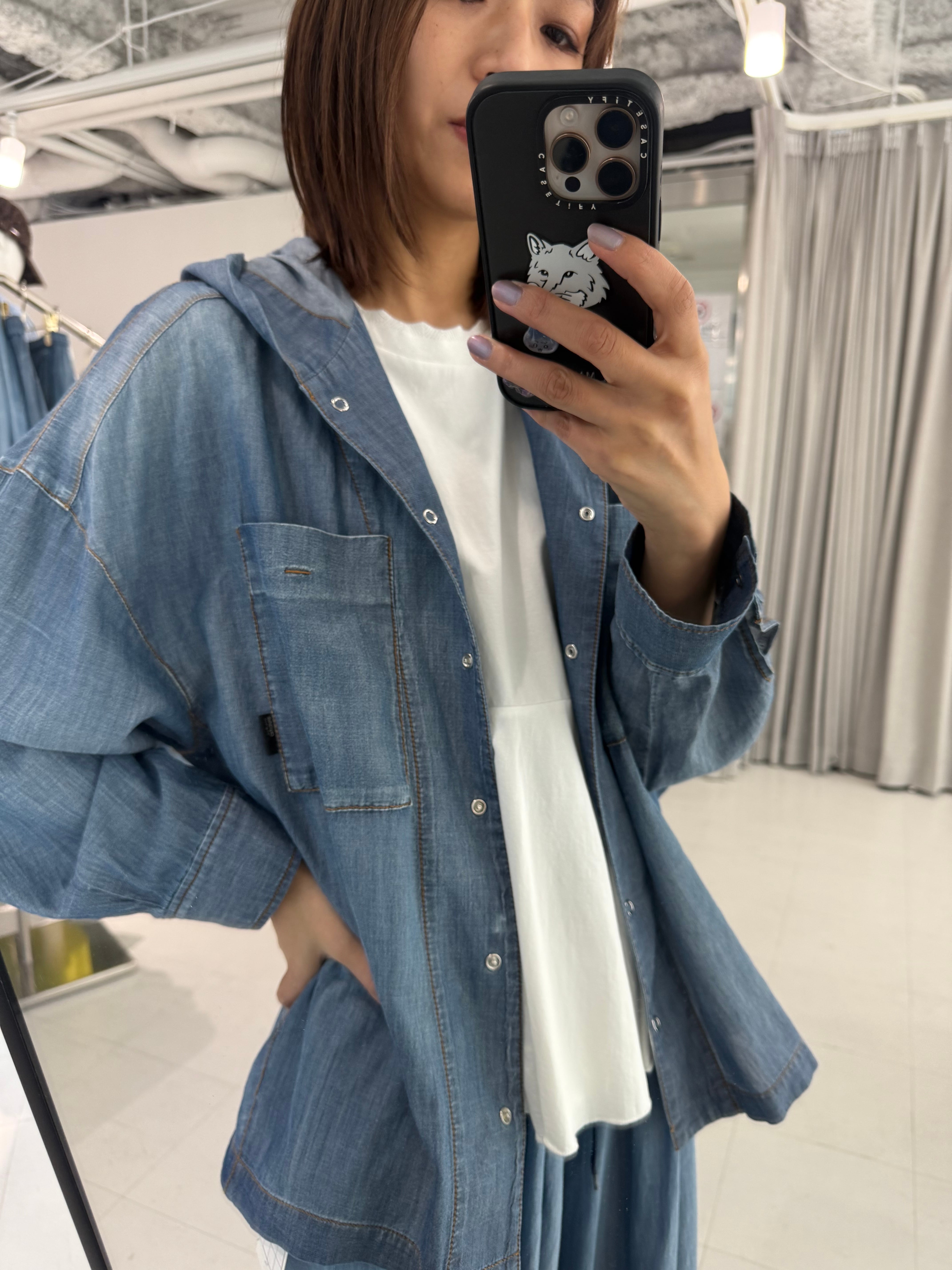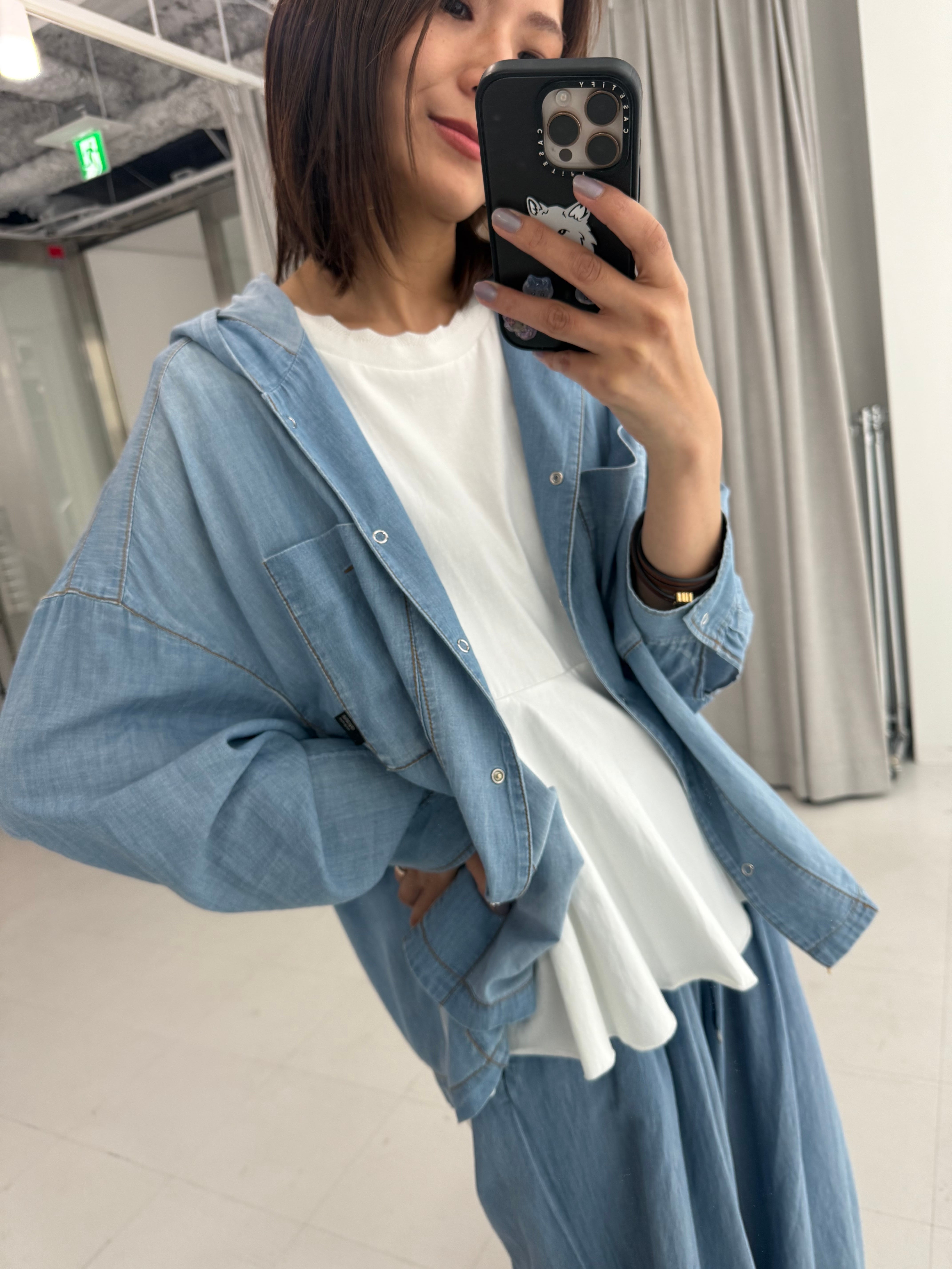 シアーデニムフーディシャツ