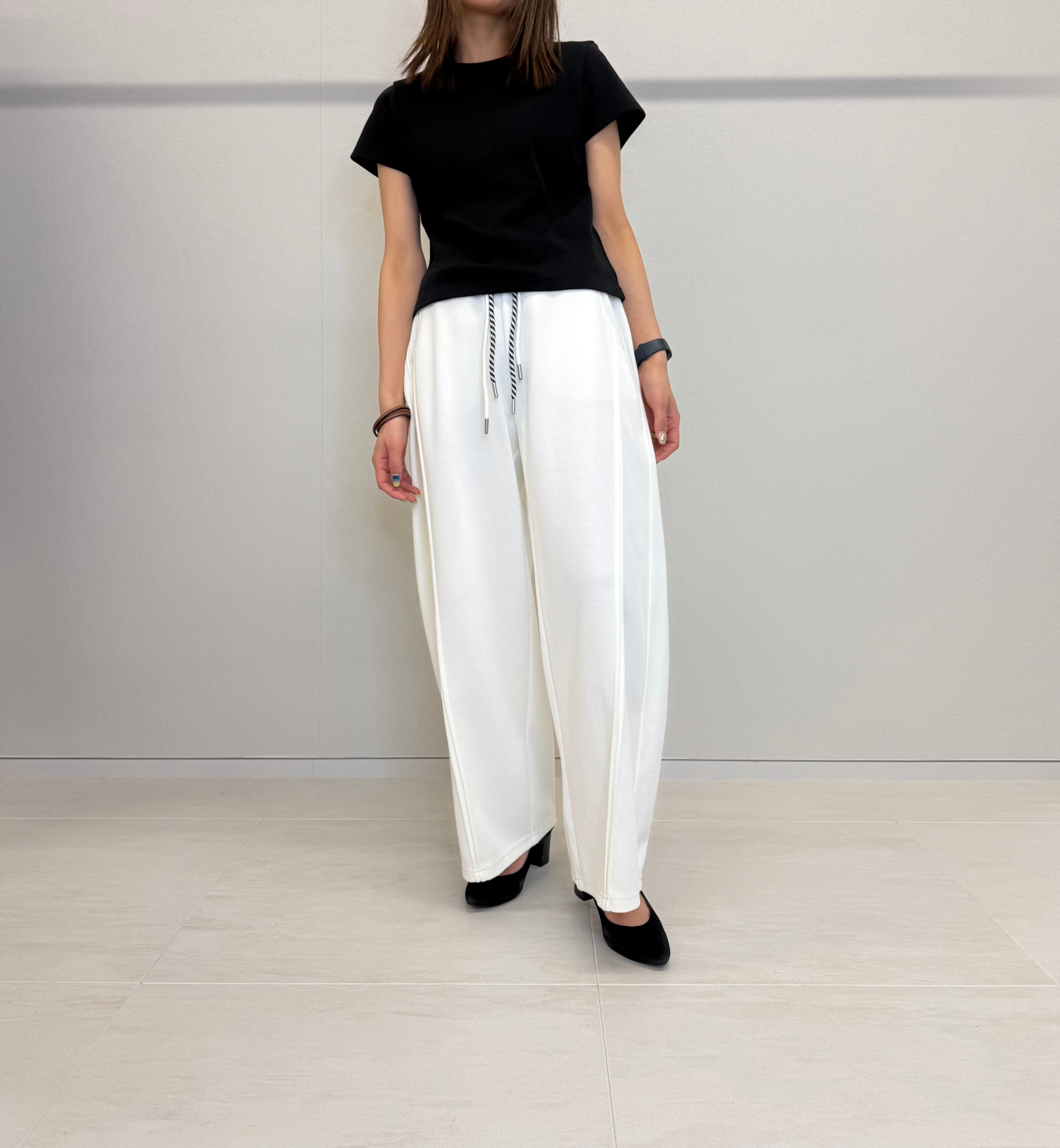 体のラインを拾いにくい肉感があるので、コンパクトなサイズ感ですが淡色も透けが気になりにくく気軽に着やすいアイテムです。