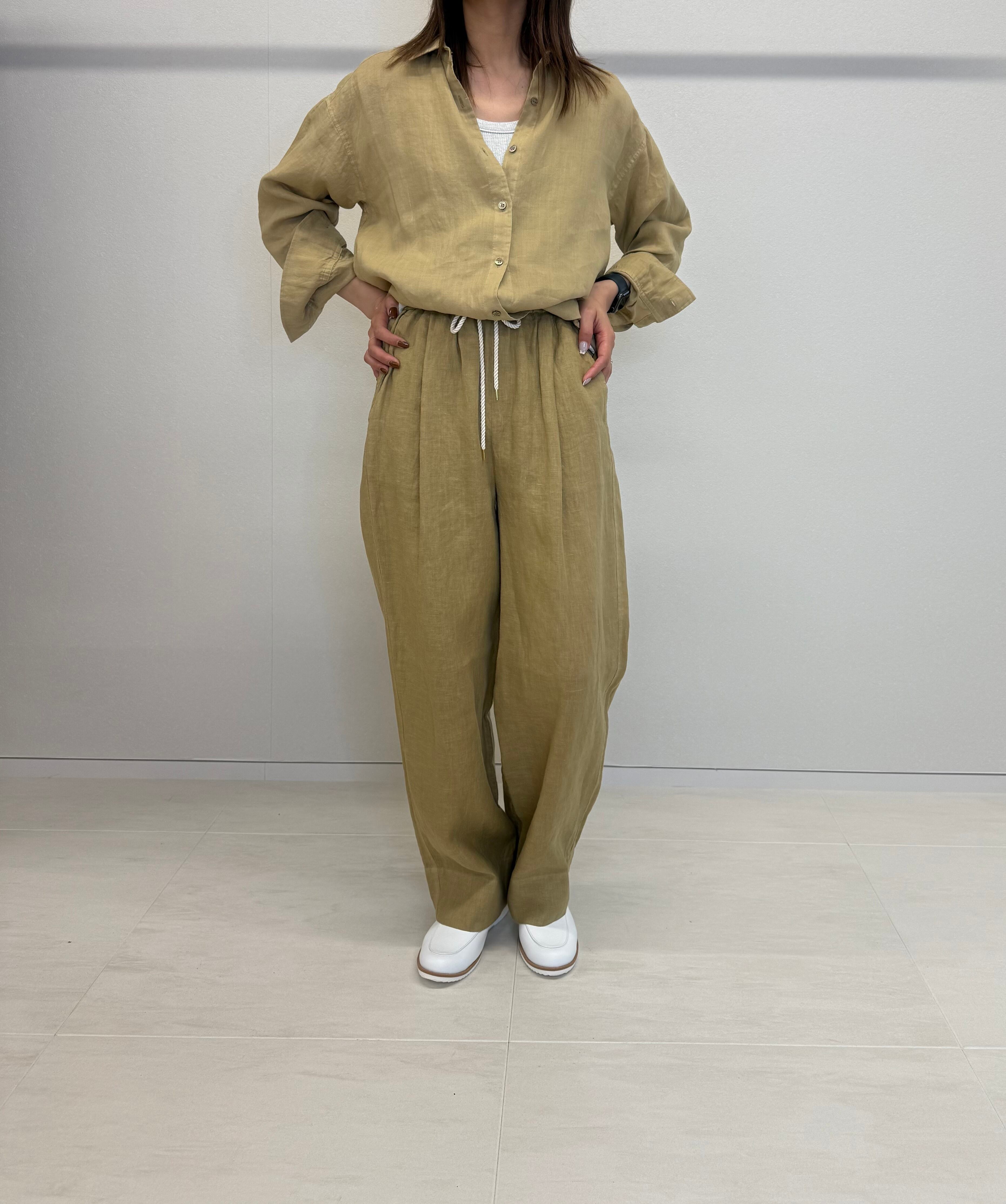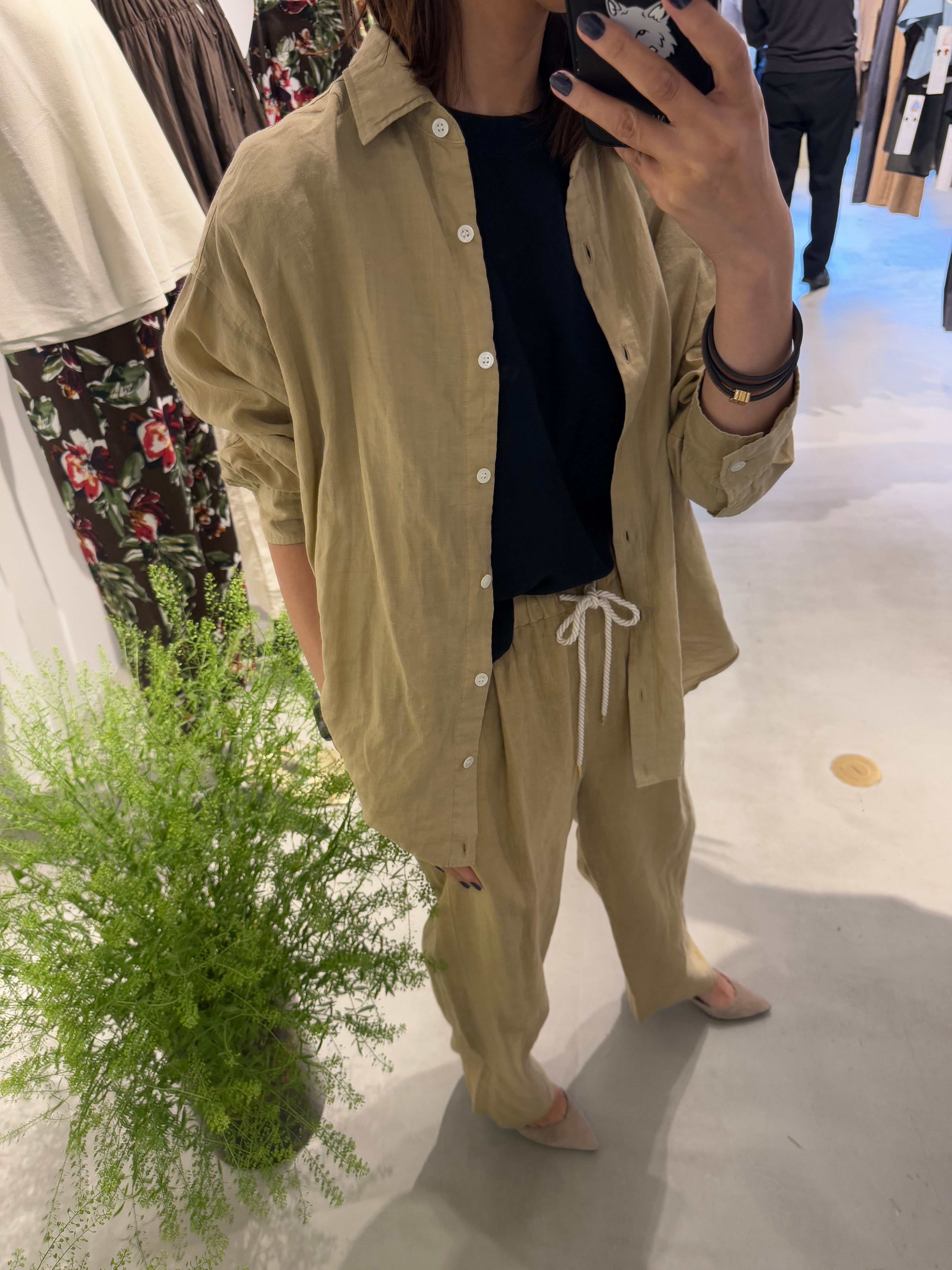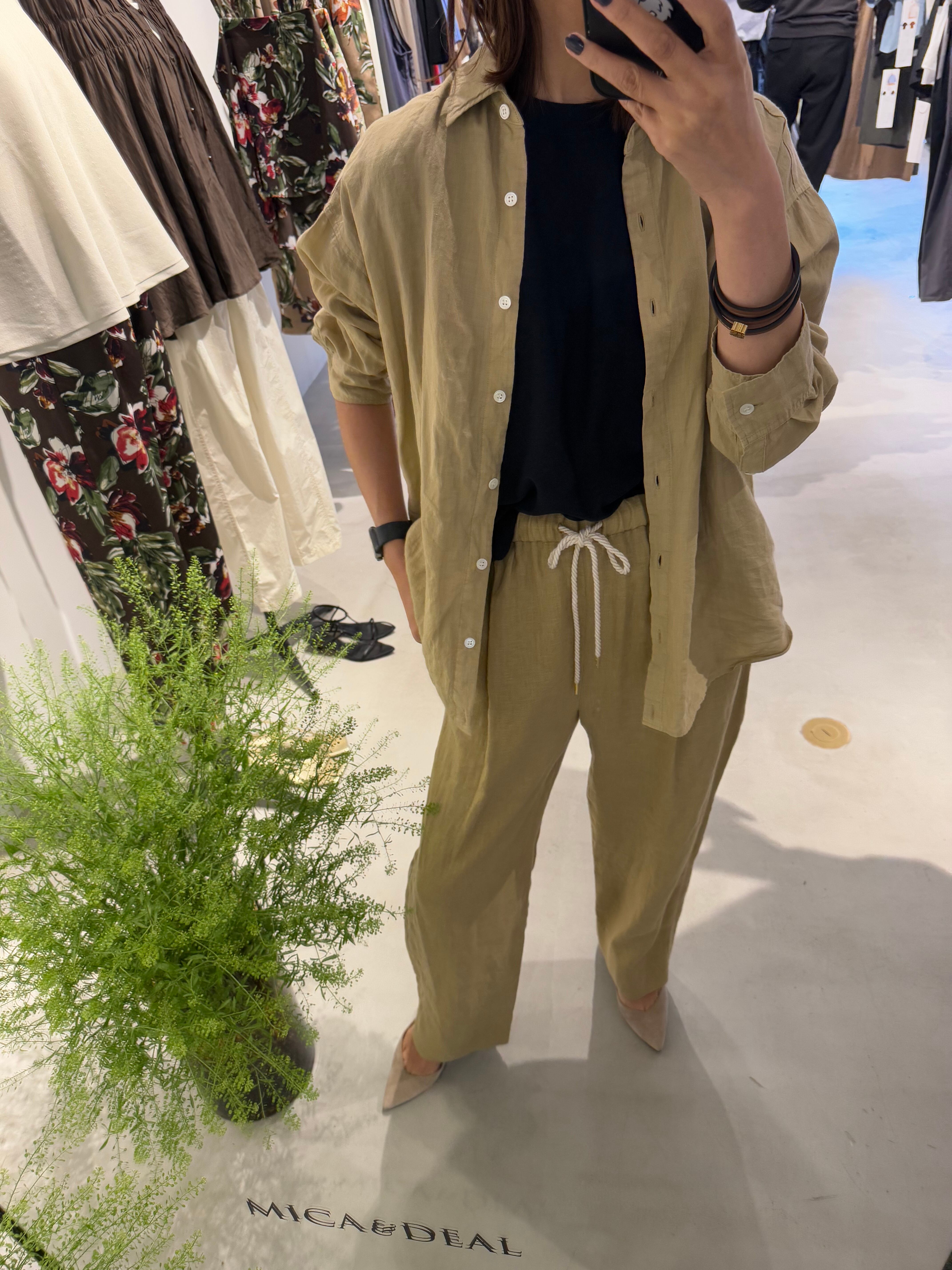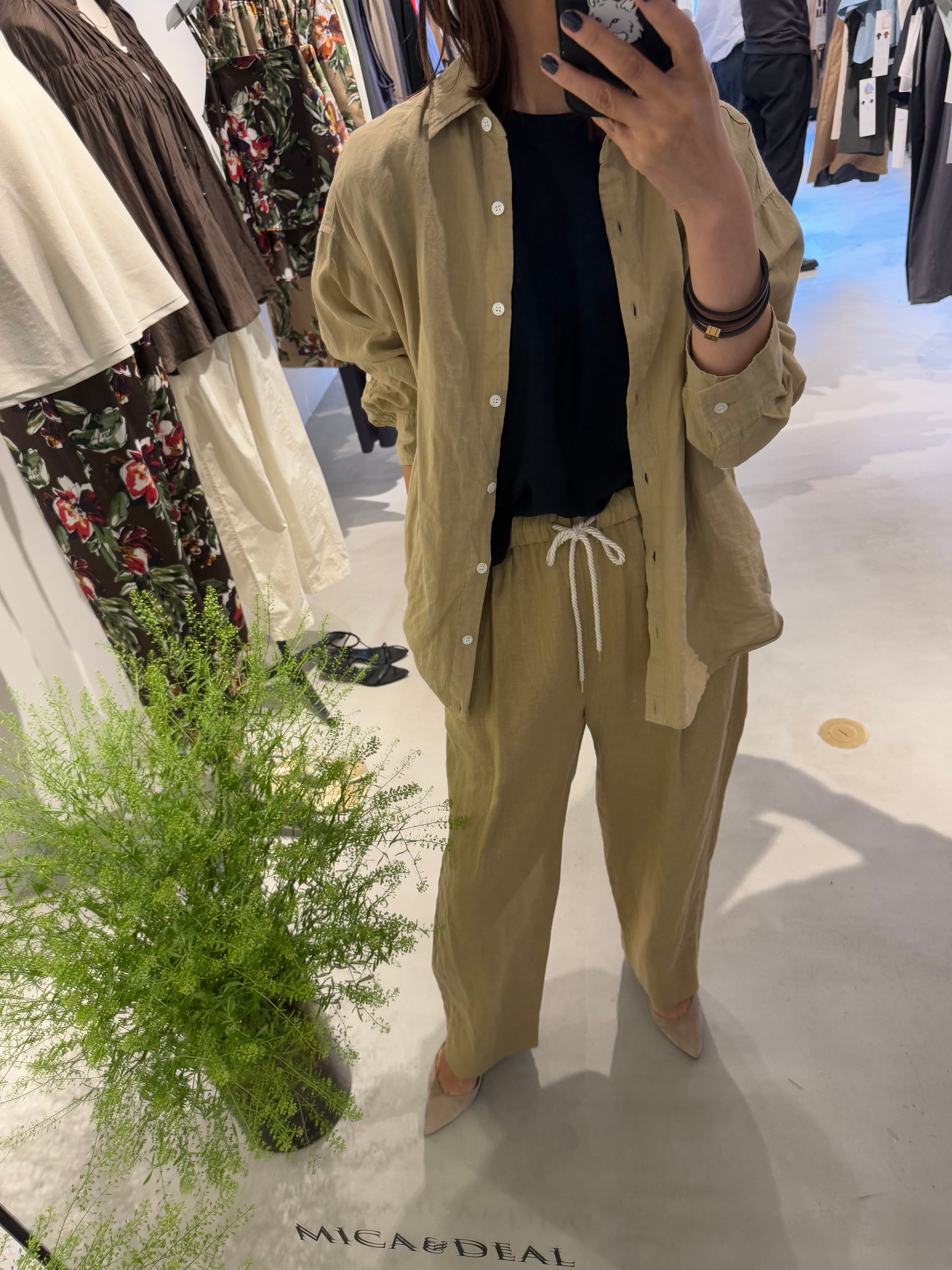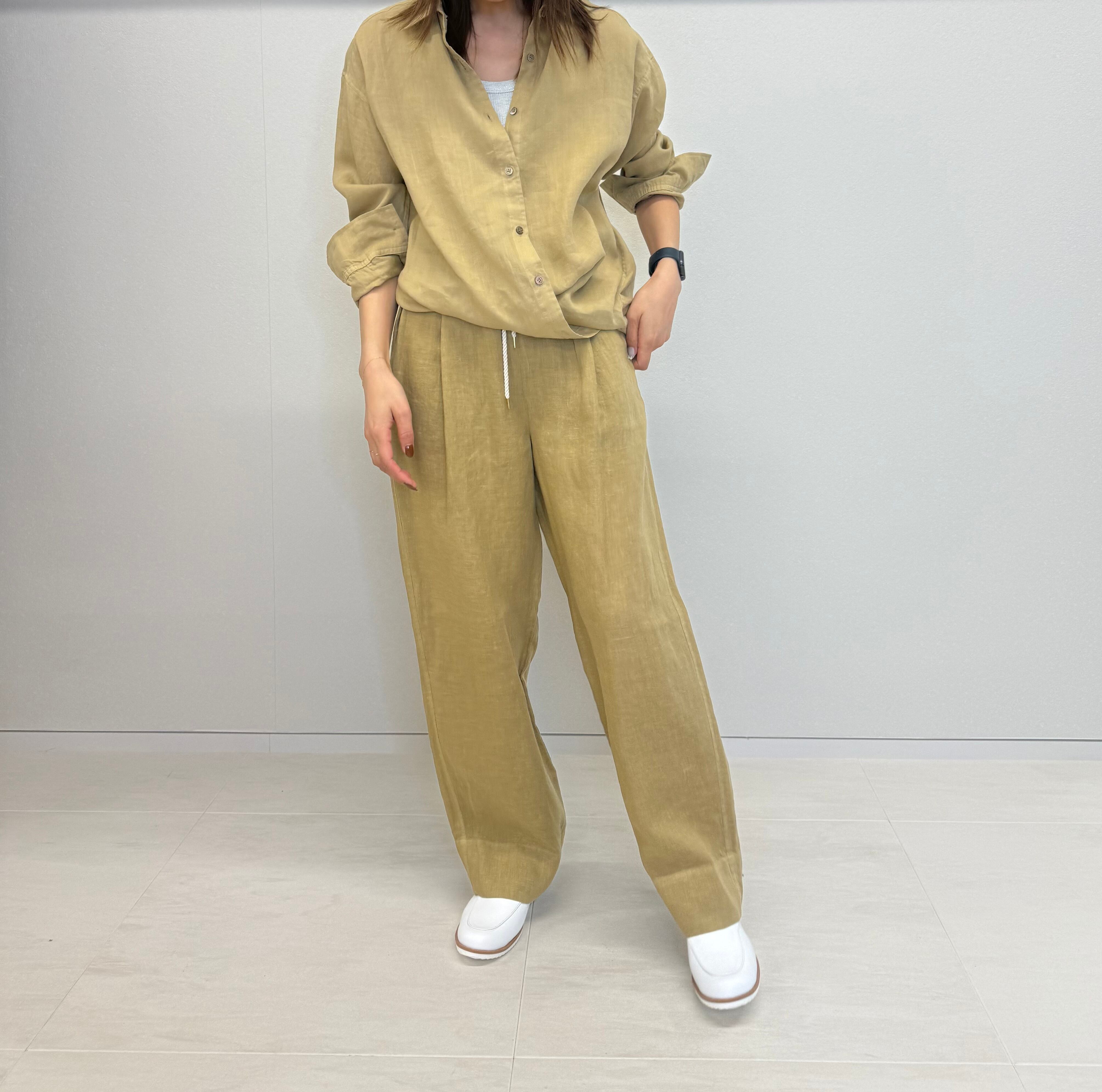 別素材(80ラミー)のシャツと一部色を合わせているので、セットアップでのスタイリングもオススメです!