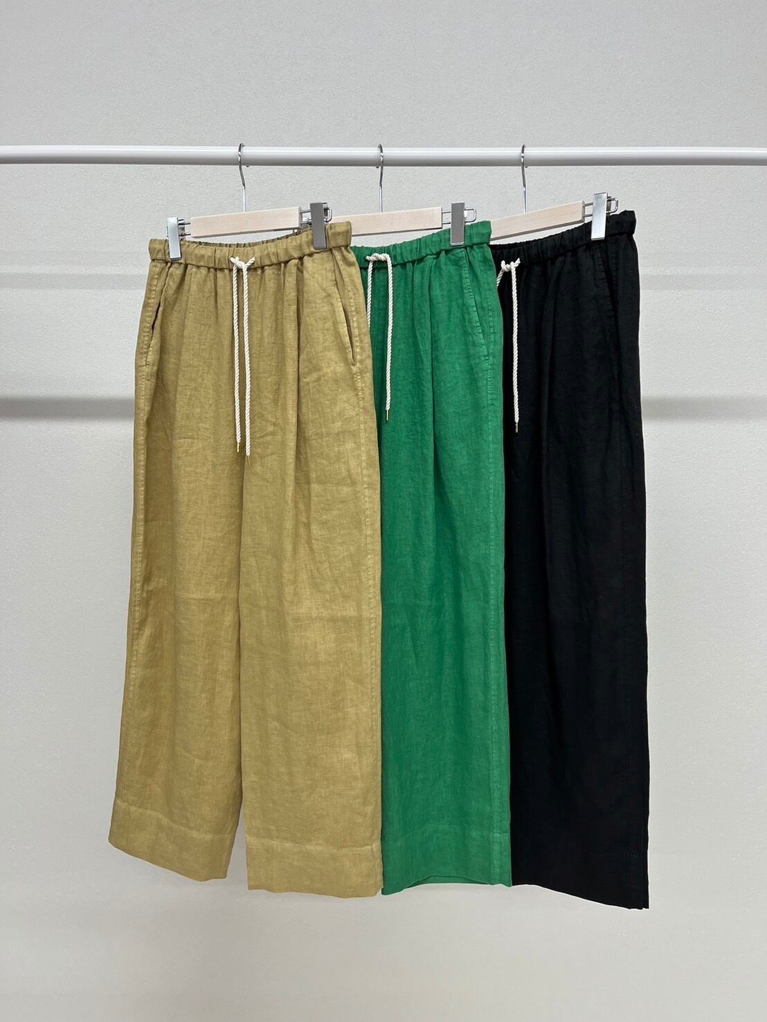 リネン100%素材を製品染め、フィム加工(麻の繊維を砕く加工)を施すことで柔らかな独特な風合いになり、