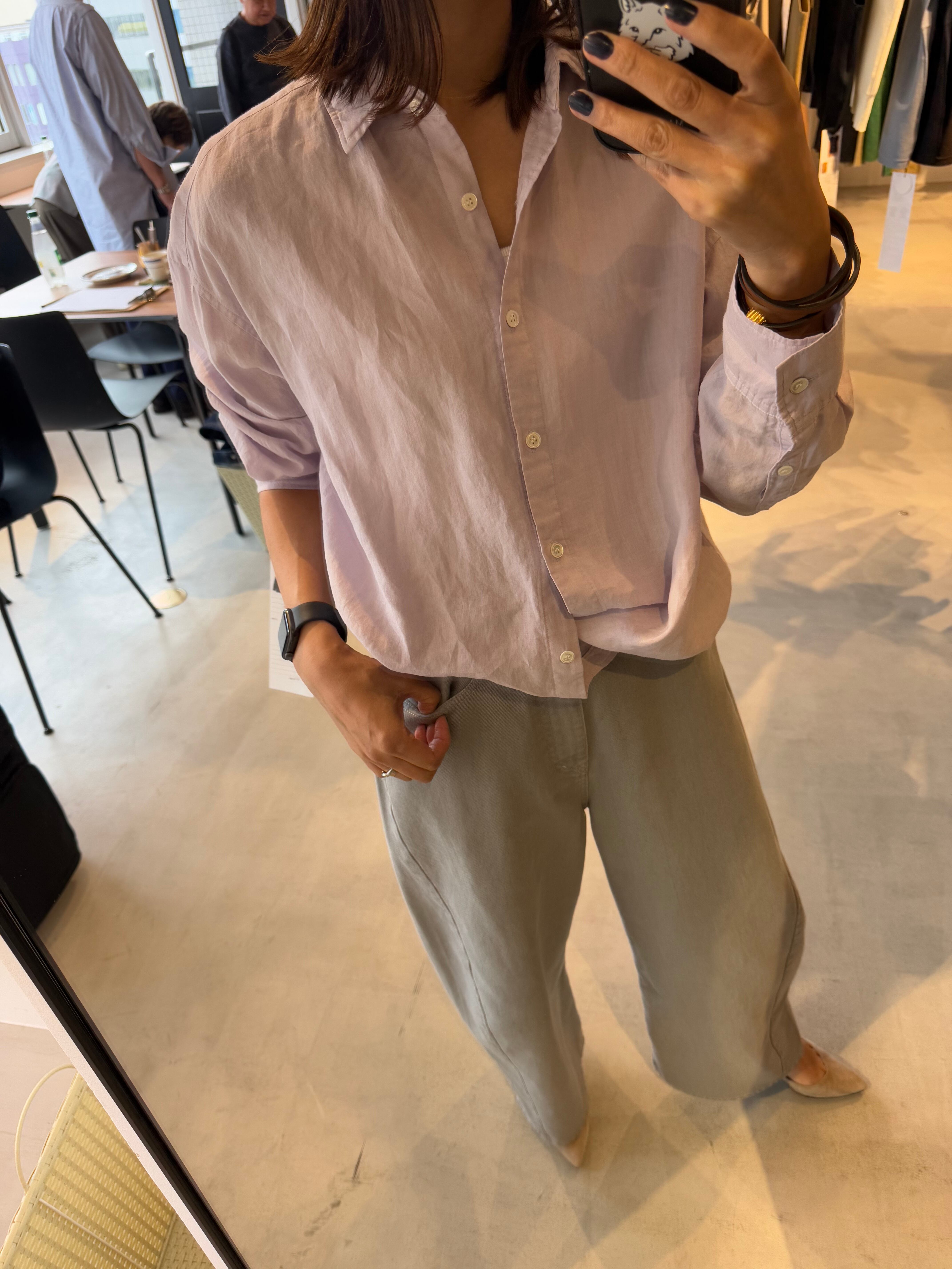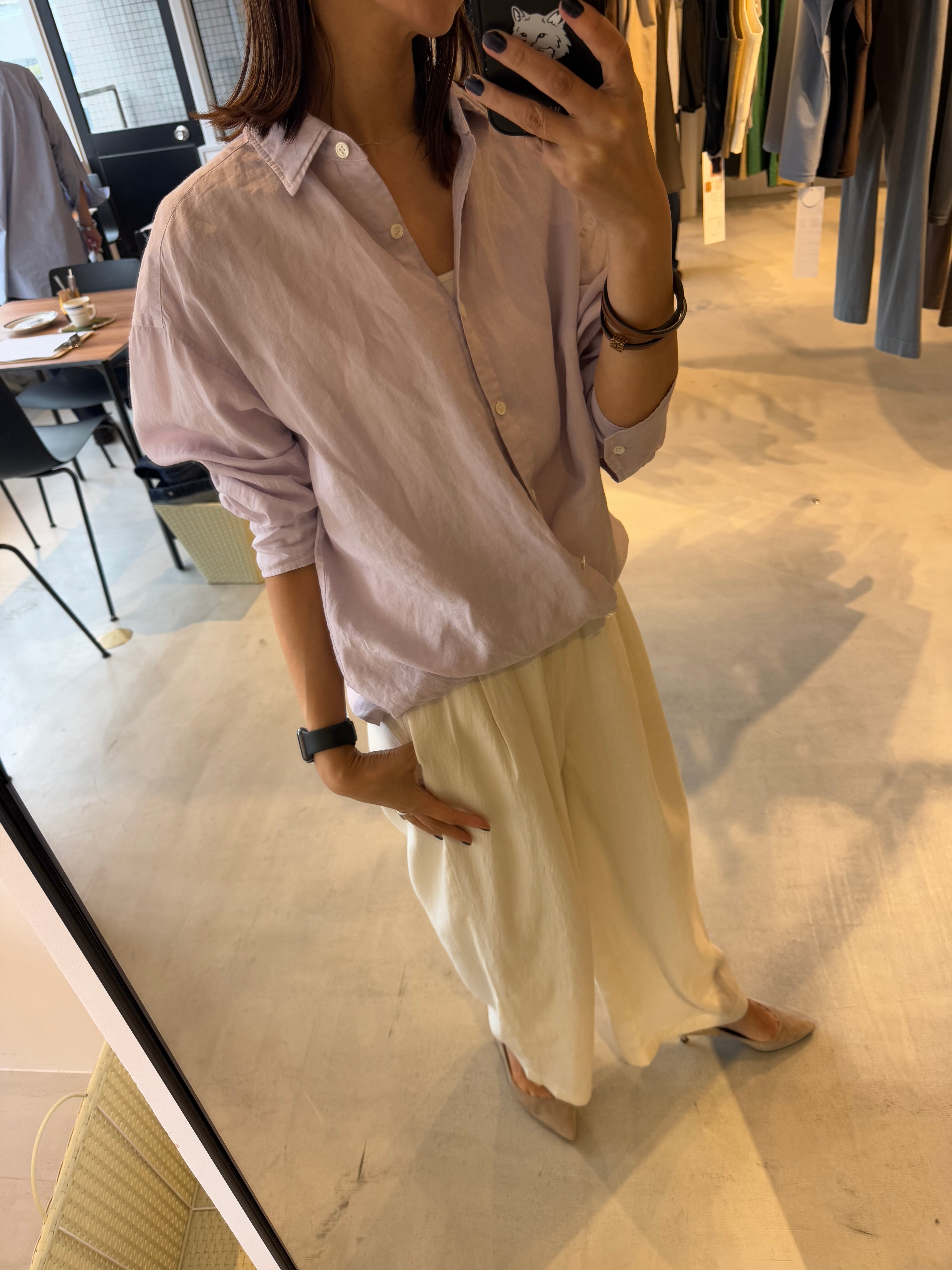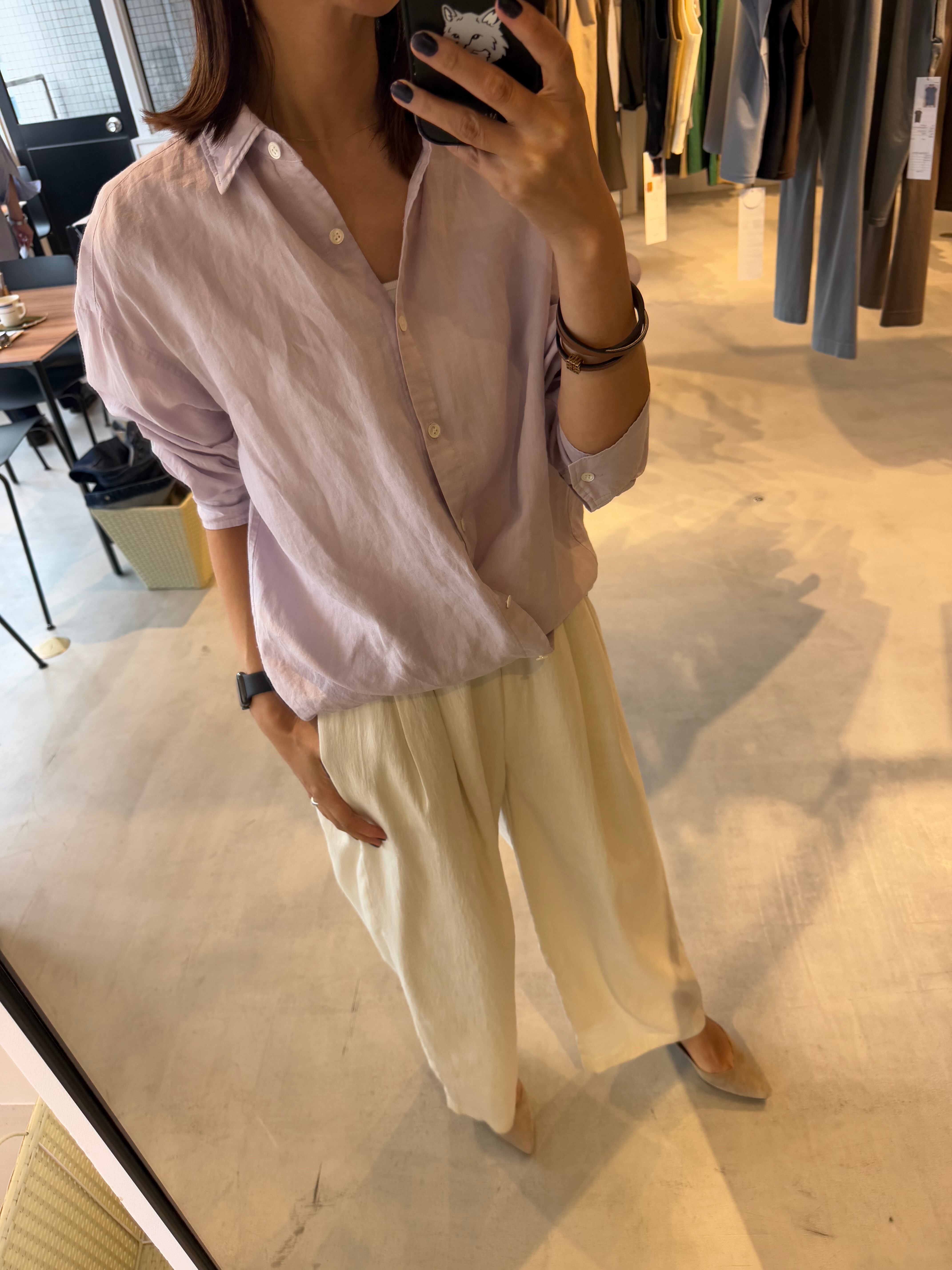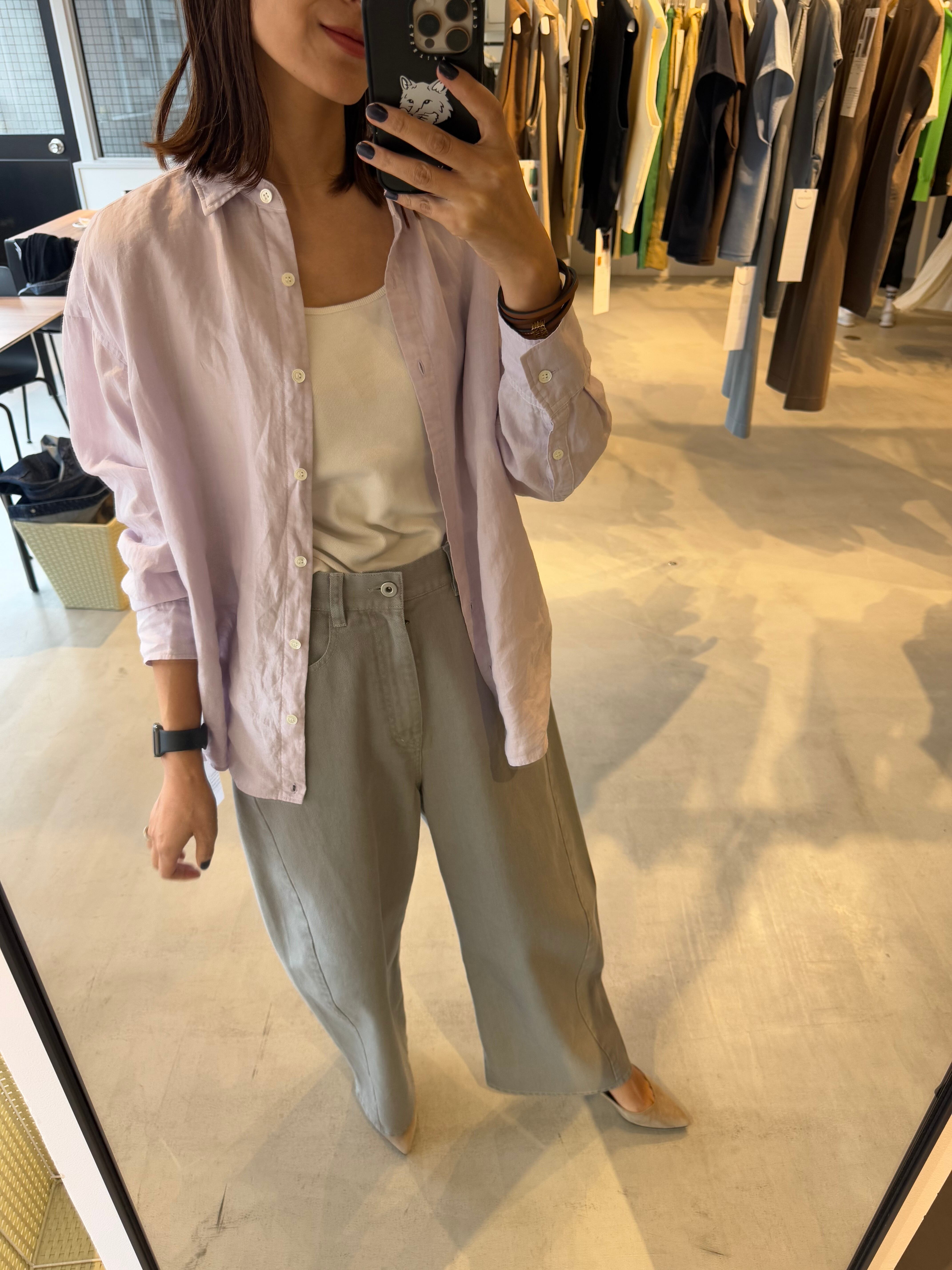通気性がよく、自然で上品な光沢が特徴の素材です。)1枚着や織ったりアレンジもしやすく、大きいすぎないサイズ感の万能シャツです。
