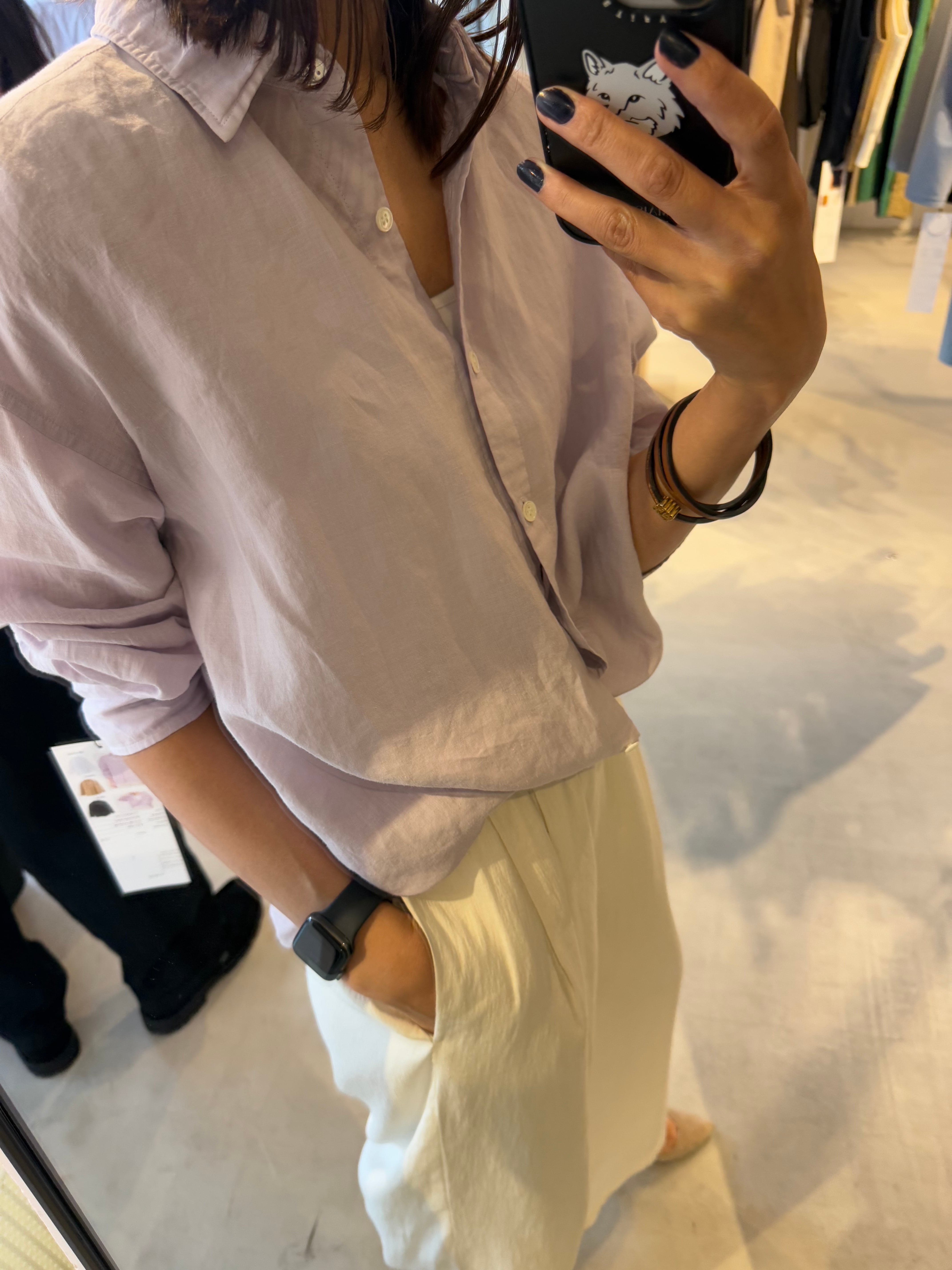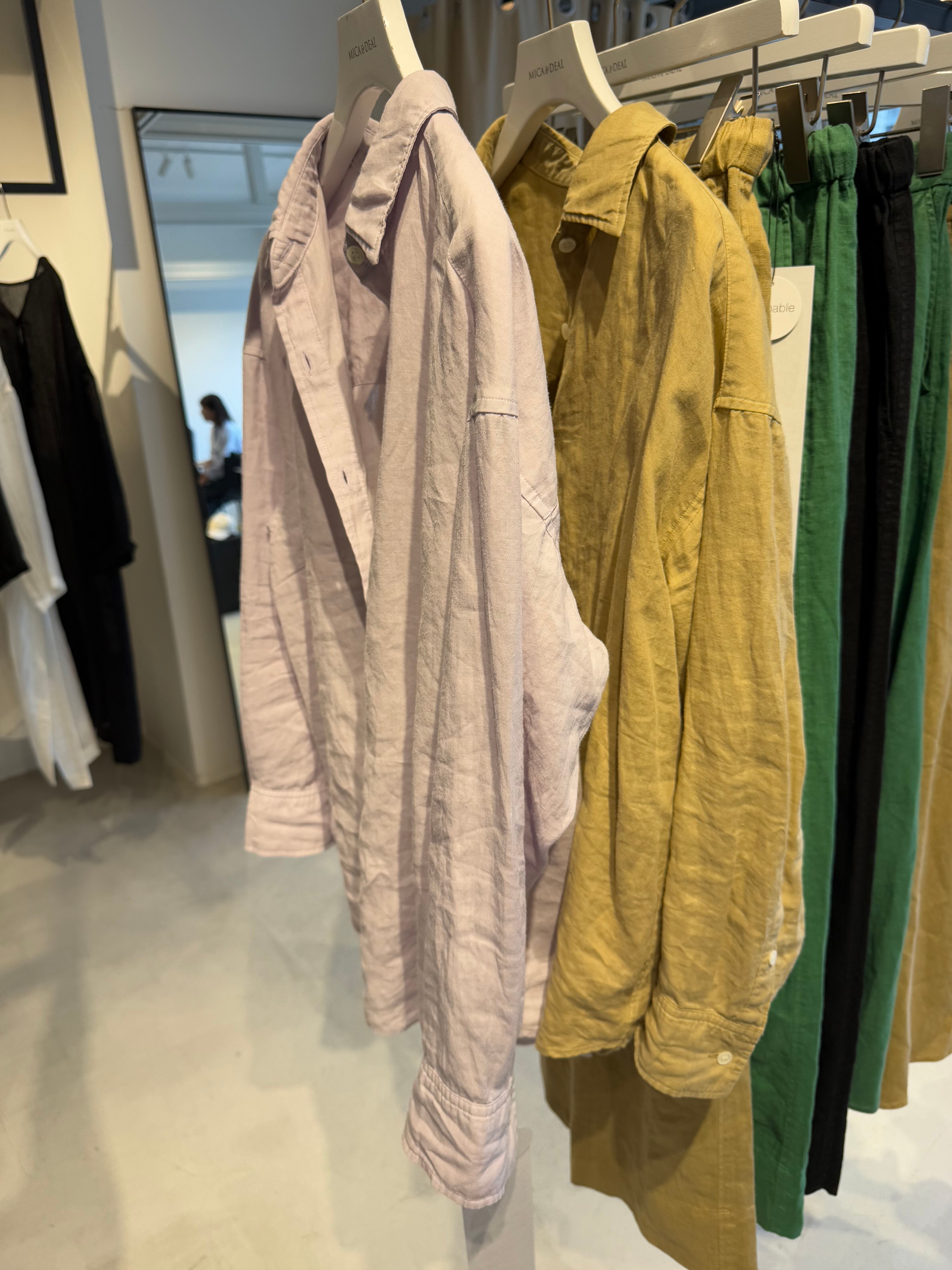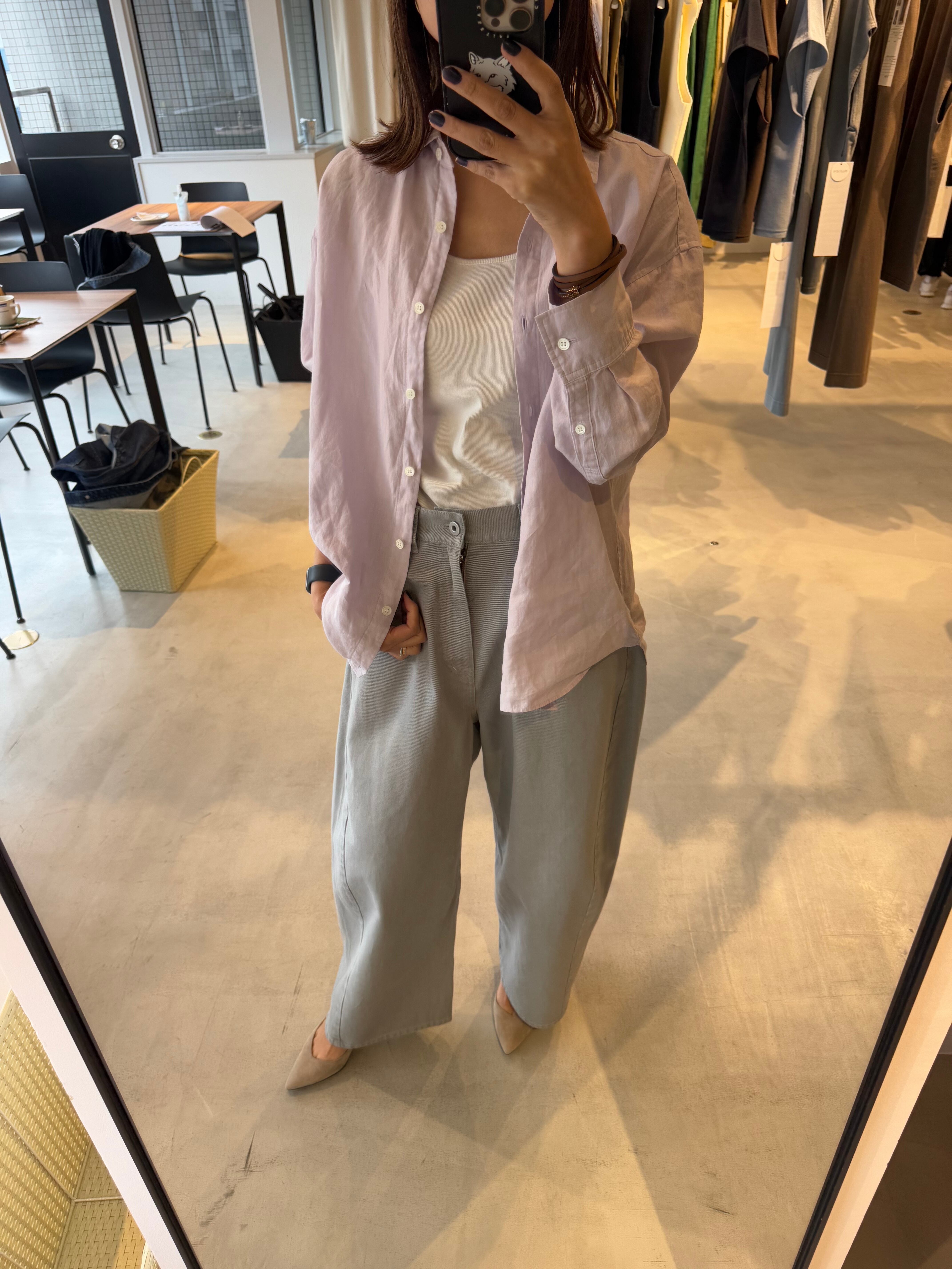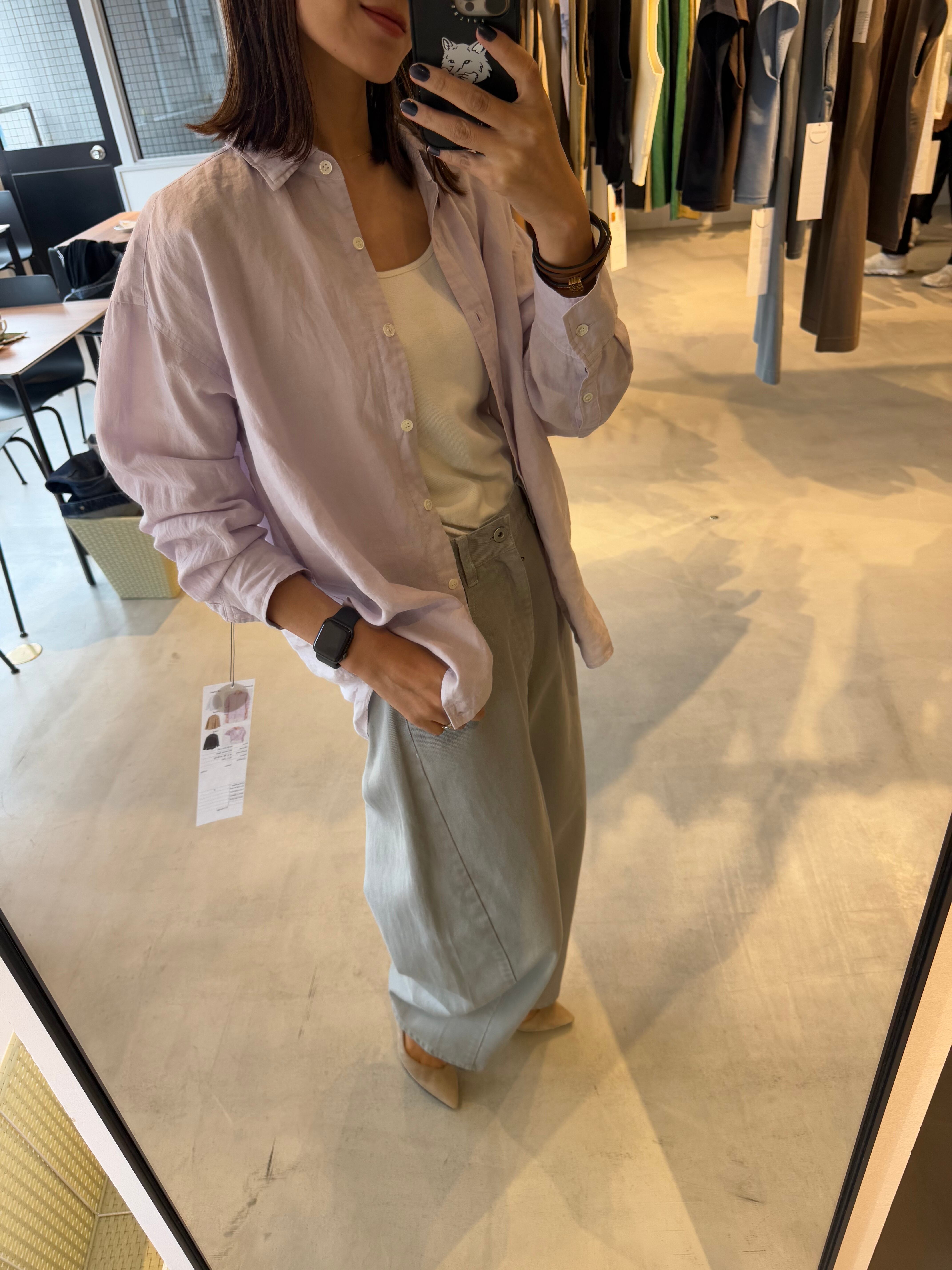 通気性がよく、自然で上品な光沢が特徴の素材です。)1枚着や織ったりアレンジもしやすく、大きいすぎないサイズ感の万能シャツです。