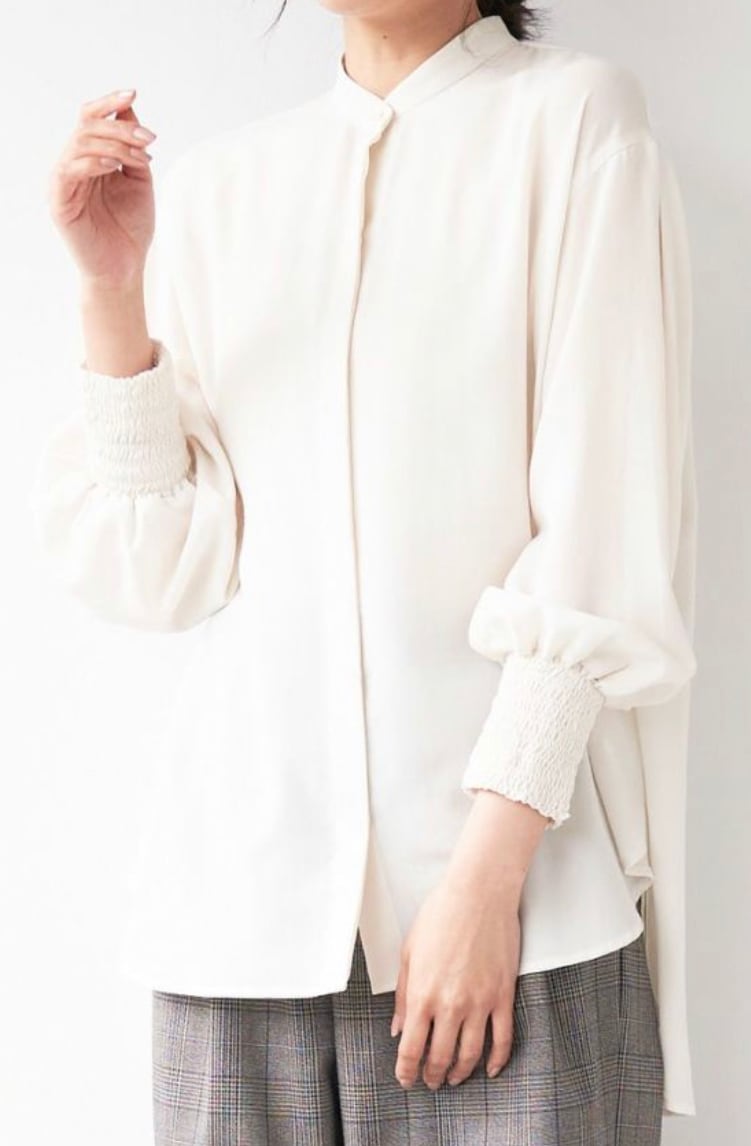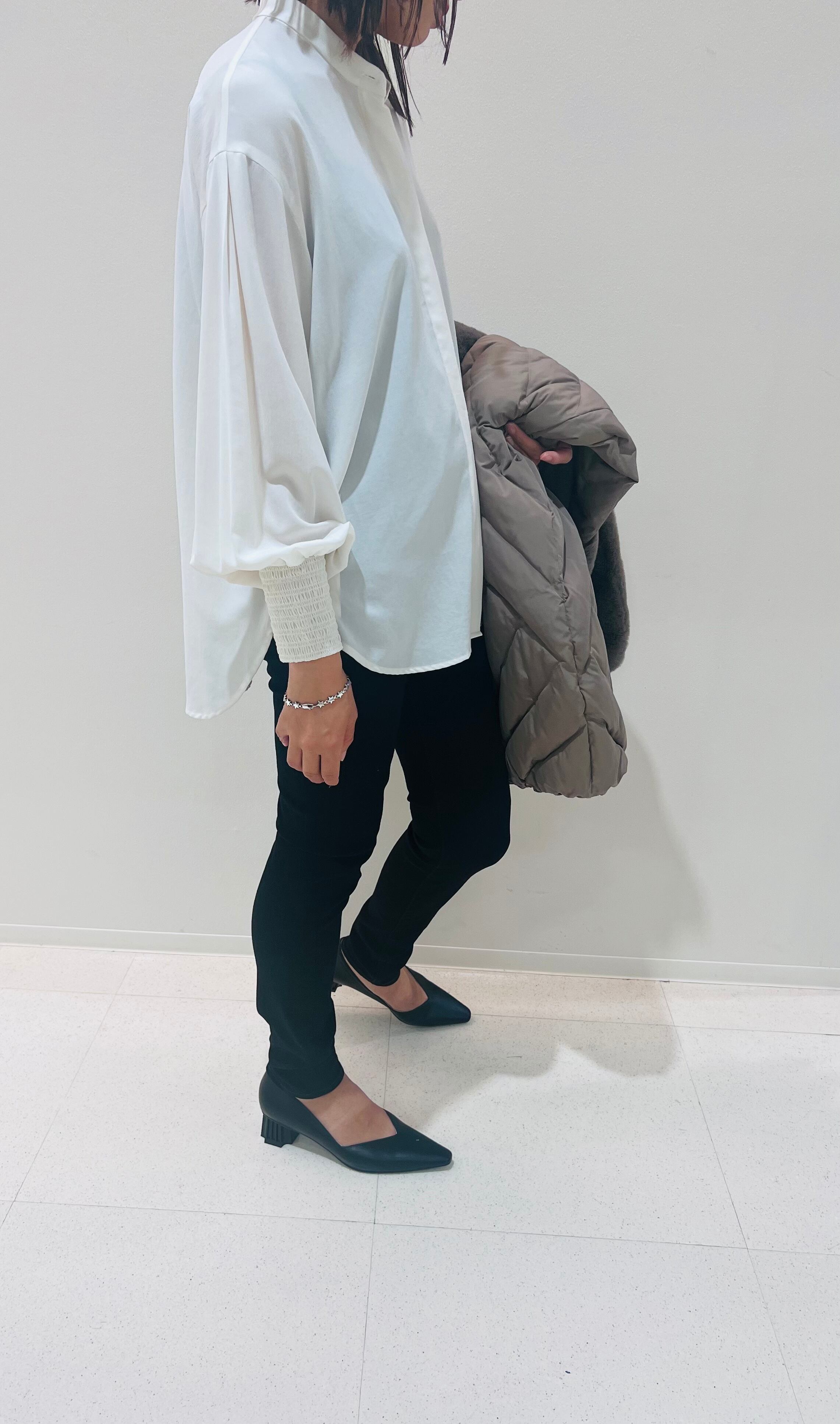 キレイ見えするので、オンオフに使いやすく、1枚で主役になるブラウスです。