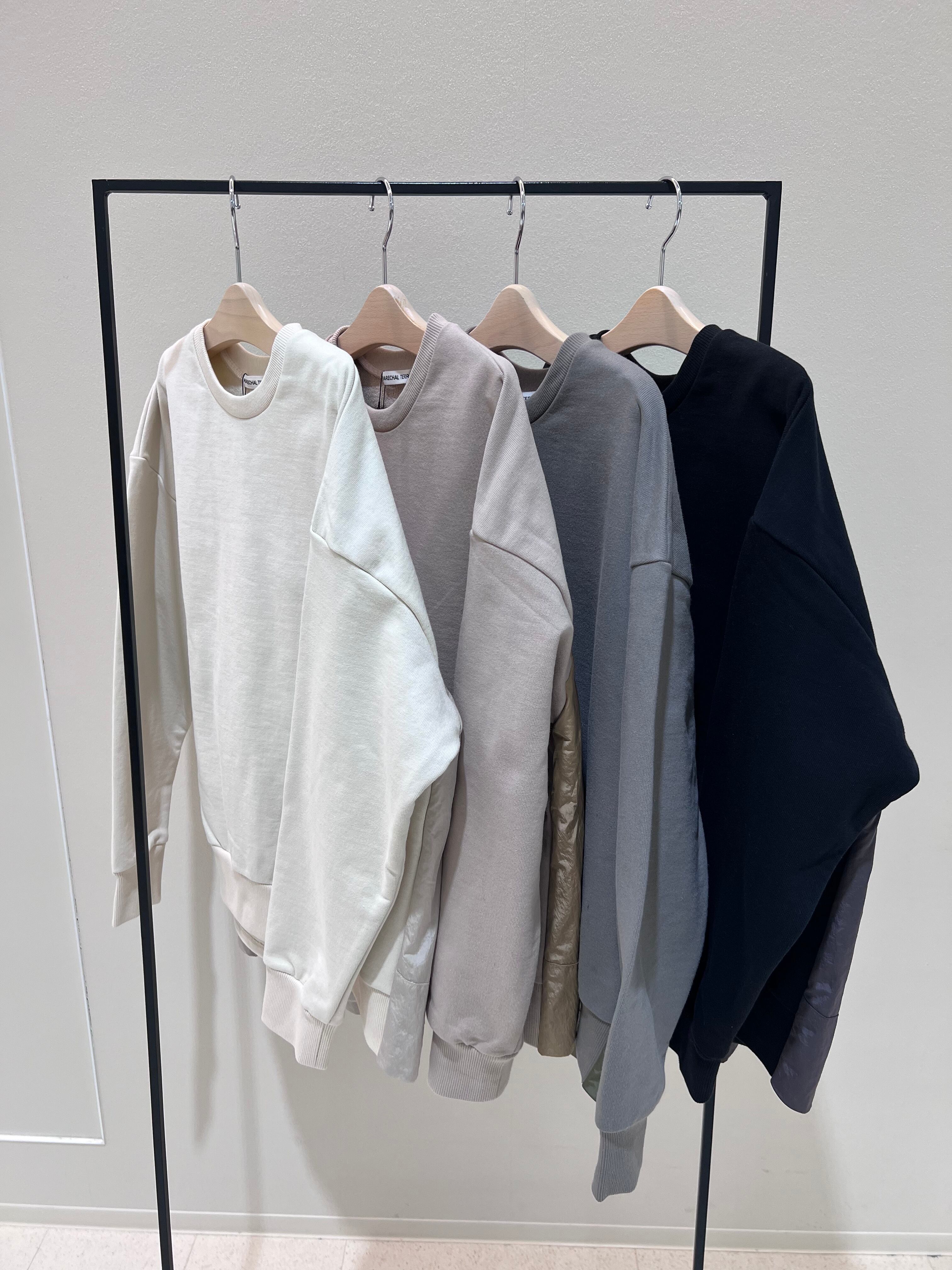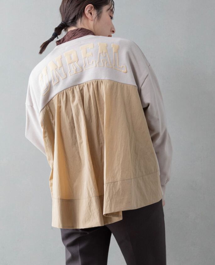 肩のラインをひろわないドロップショルダーにし、全体的にビックシルエットなので窮屈感なくゆったり着ていただけます。