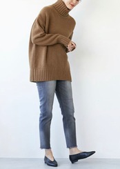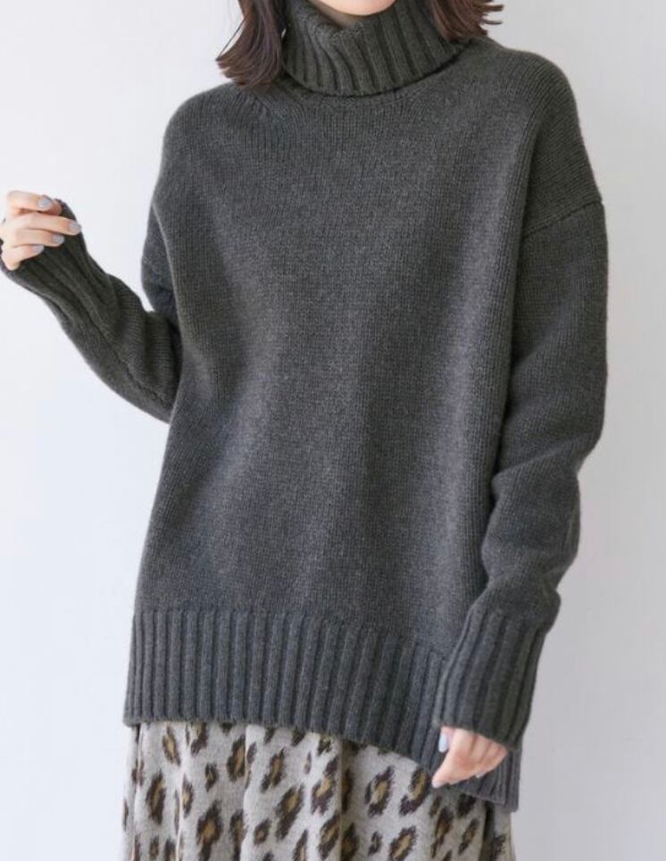 ゆったりとしたリラックス感のあるシルエットで、タートルネック部分は優しく首回りをホールドし、小顔効果もある優秀ニットです。