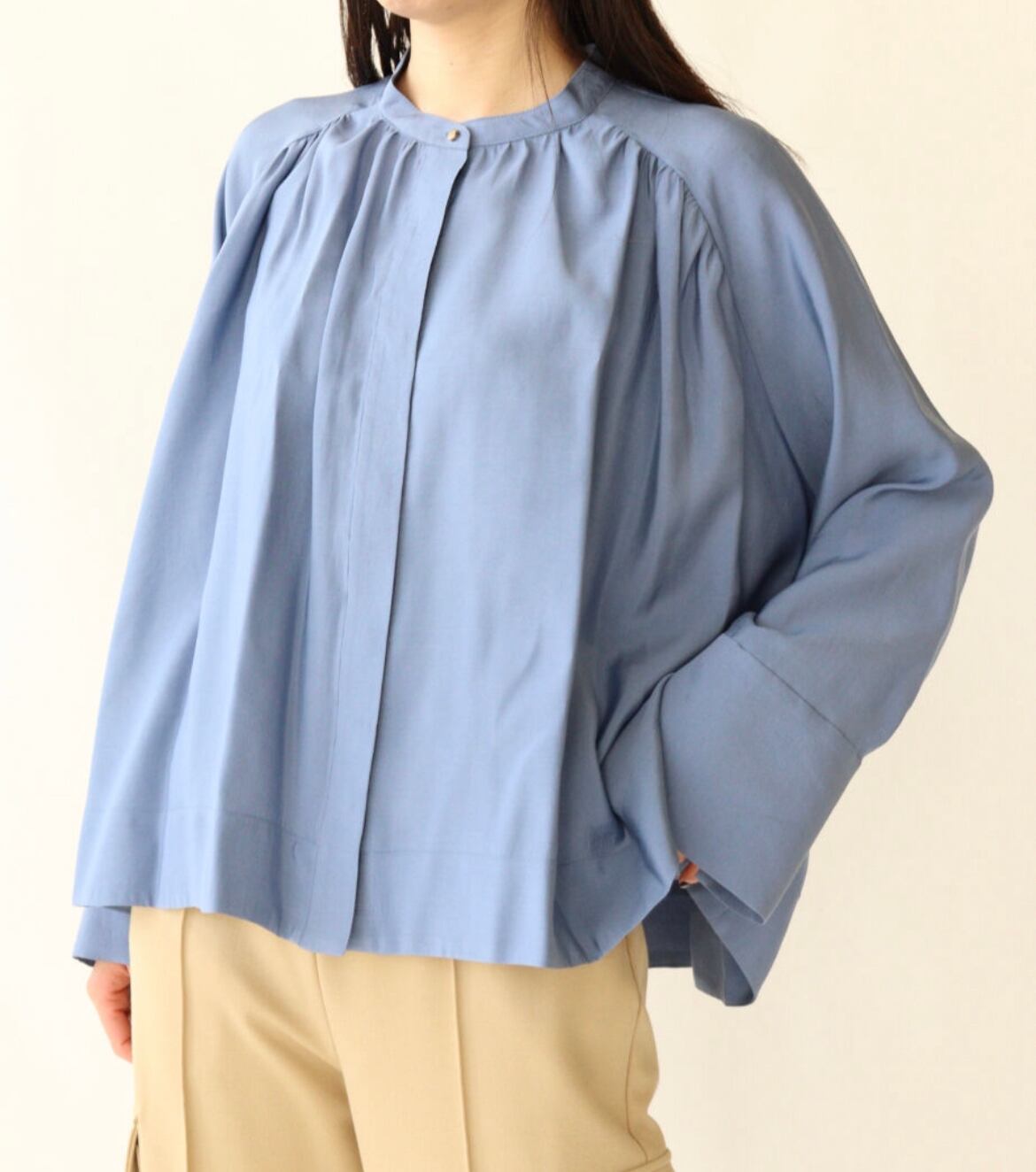 ギャザーがたっぷりと入ったシルエットでモードに着こなせます。