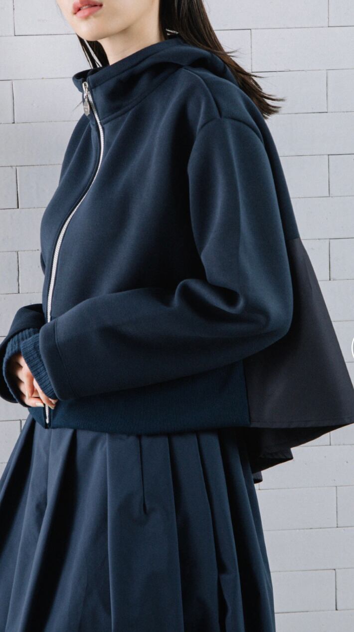 ダンボールニット×タフタ素材を組み合わせた、デザインパーカー