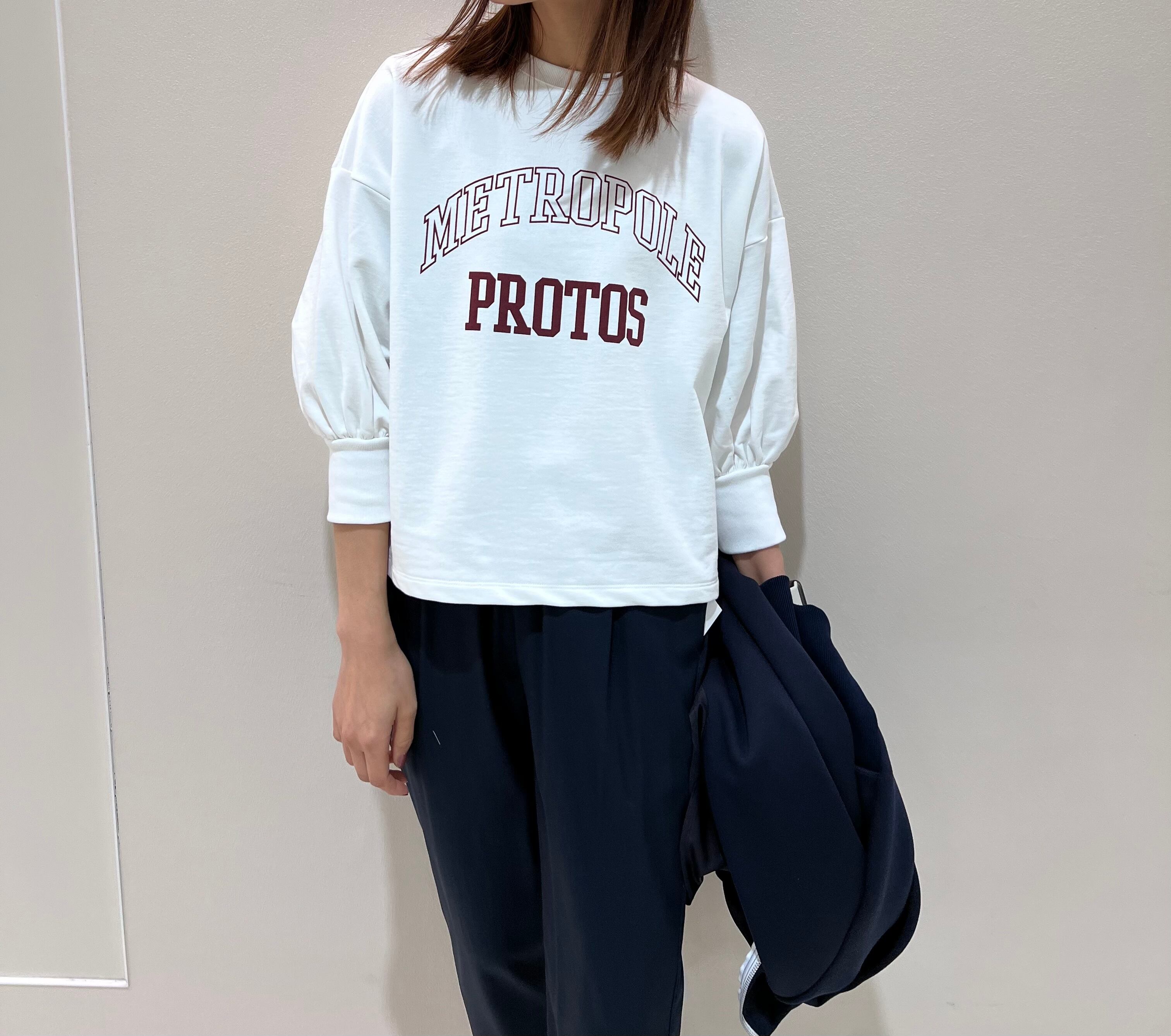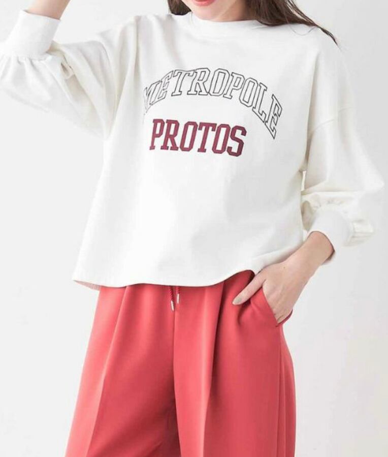 メンズっぽくなりがちなカレッジロゴですが女性らしくお洒落に着ていただけます。