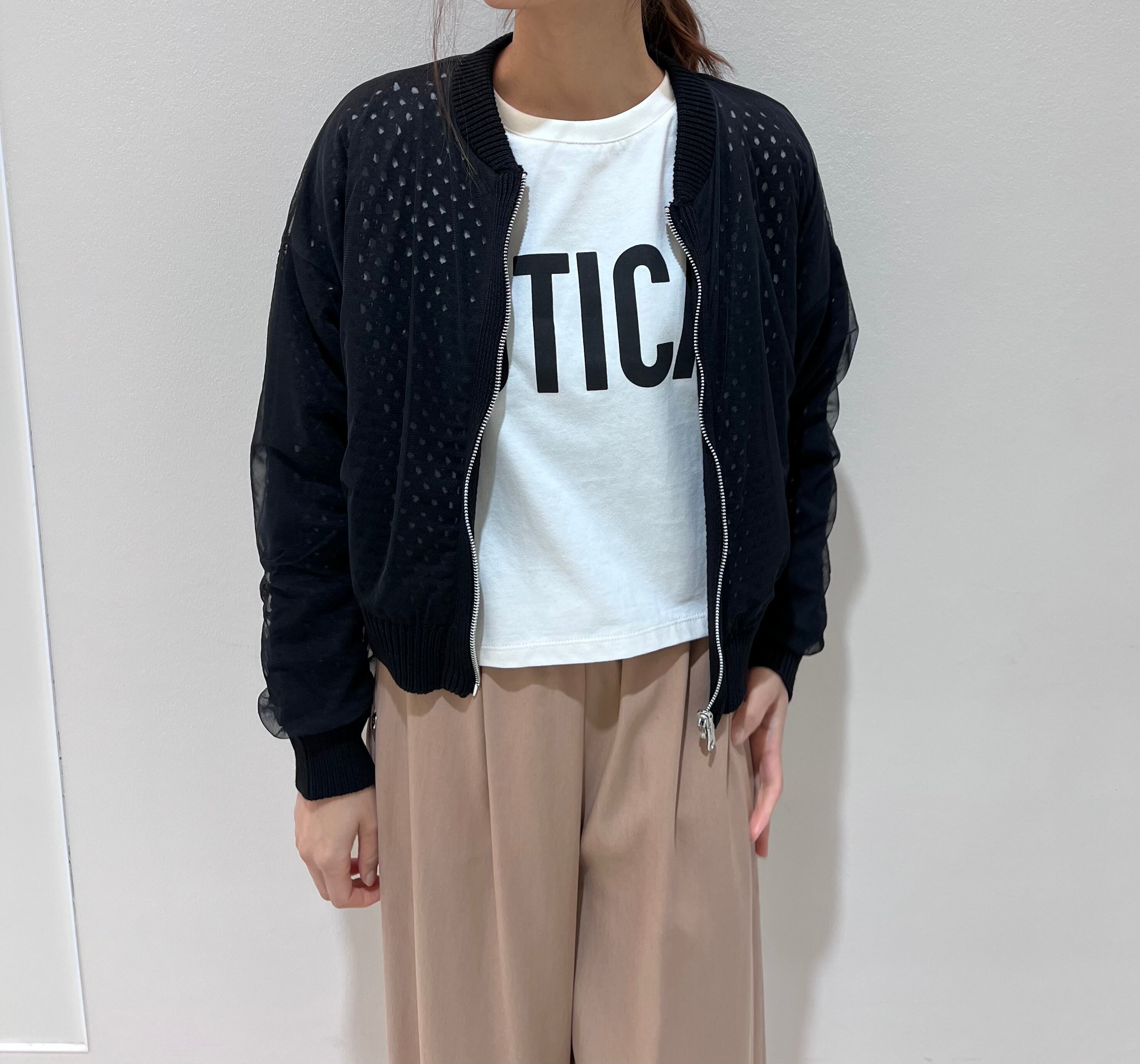 ニットメッシュとチュールが重なったシアー感が、他にはないアイテムです。