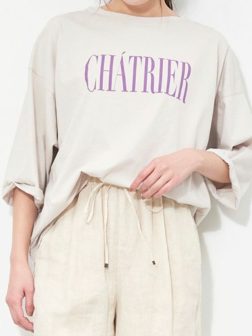 ロゴのデザインは、CHATRAIER(シャトリエ)=フランス語。(人名)縦長を強調しアクセント記号を付け、あえて読みにくいバランスにこだわったロゴをプリントしたロゴT-shirt。