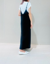UVカットや接触冷感の効果も春夏に嬉しい魅力ある素材です。Iラインのキレイなシルエットが映えるキャミドレス。