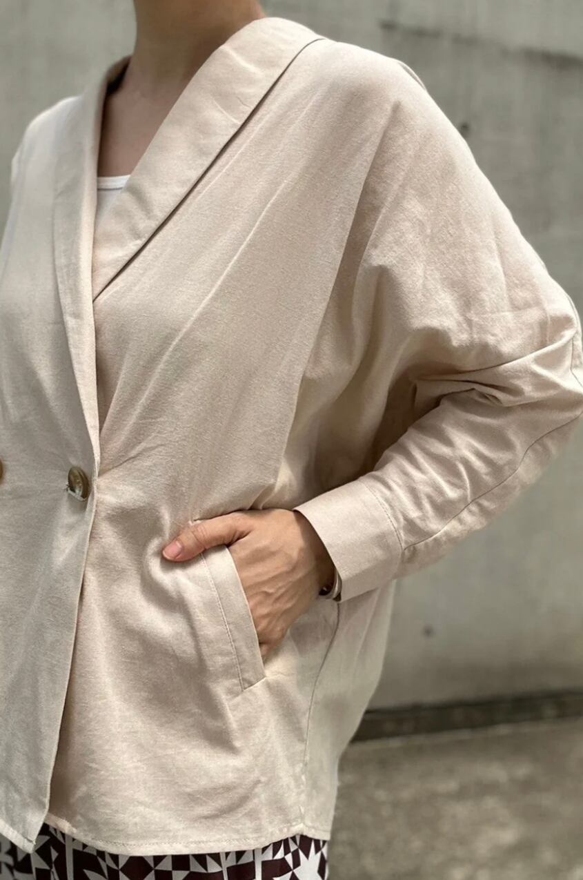 シャツ感覚で羽織れるリラックス感が魅力のドルマンジャケット。