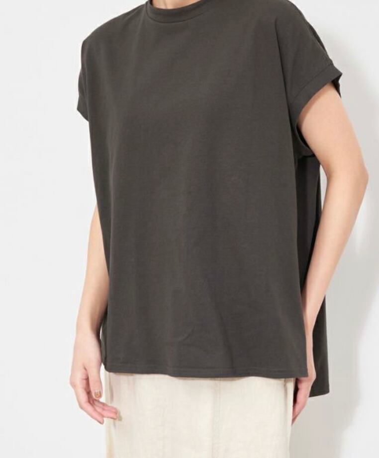 両サイドの深めのスリットで透け感を出し、こなれた印象にしています。