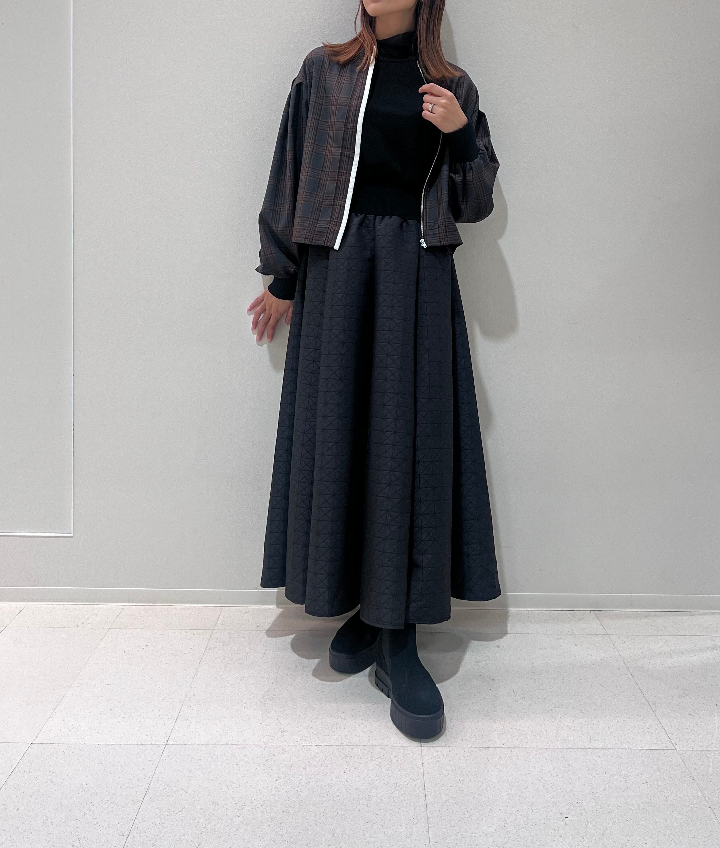 裾が一部タックゴム仕様になっていますので、フレアーパンツや、スカートと合わせると、ポイントが上に上がり、新鮮なバランス感がおすすめです。