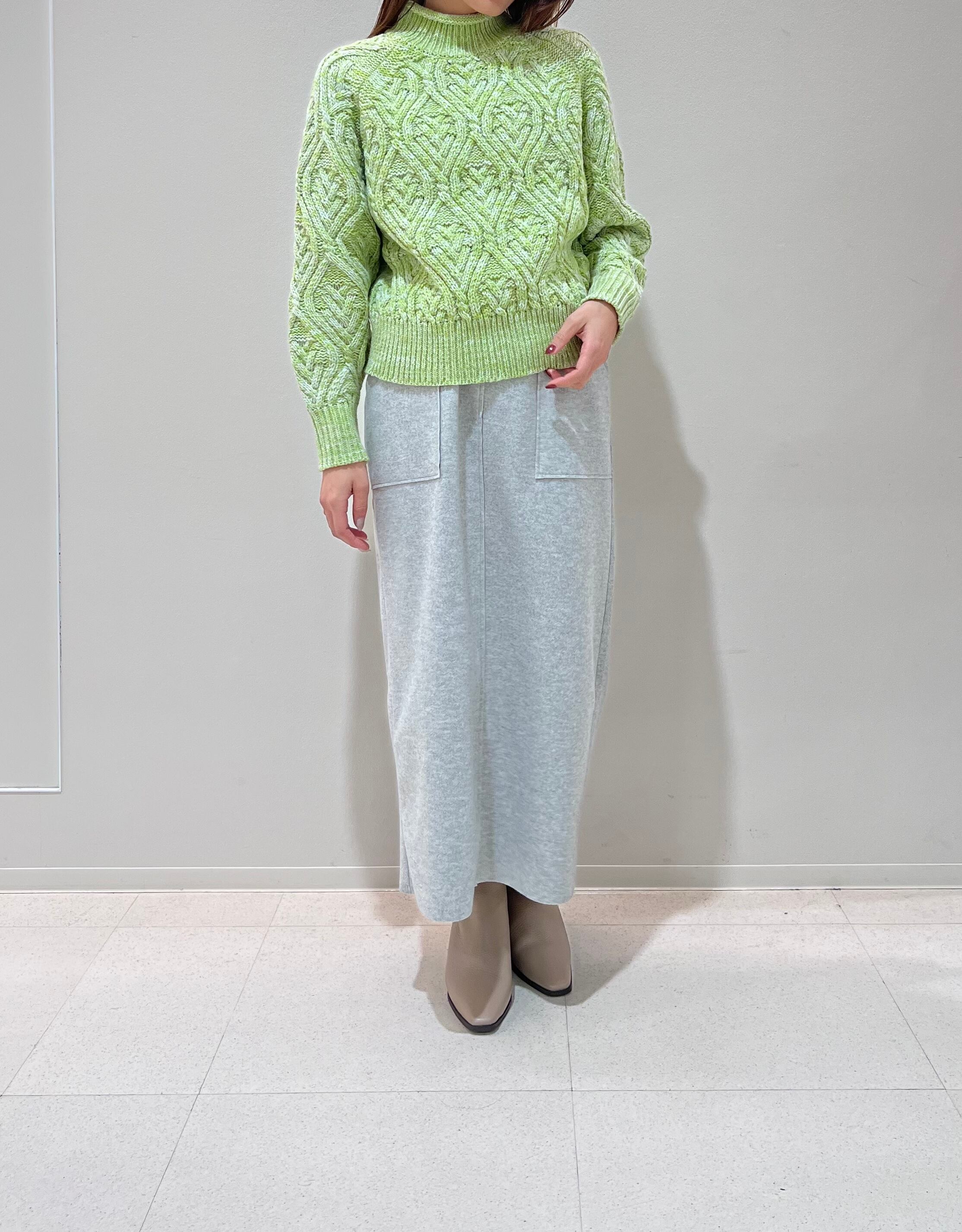 柄編みケーブルニット