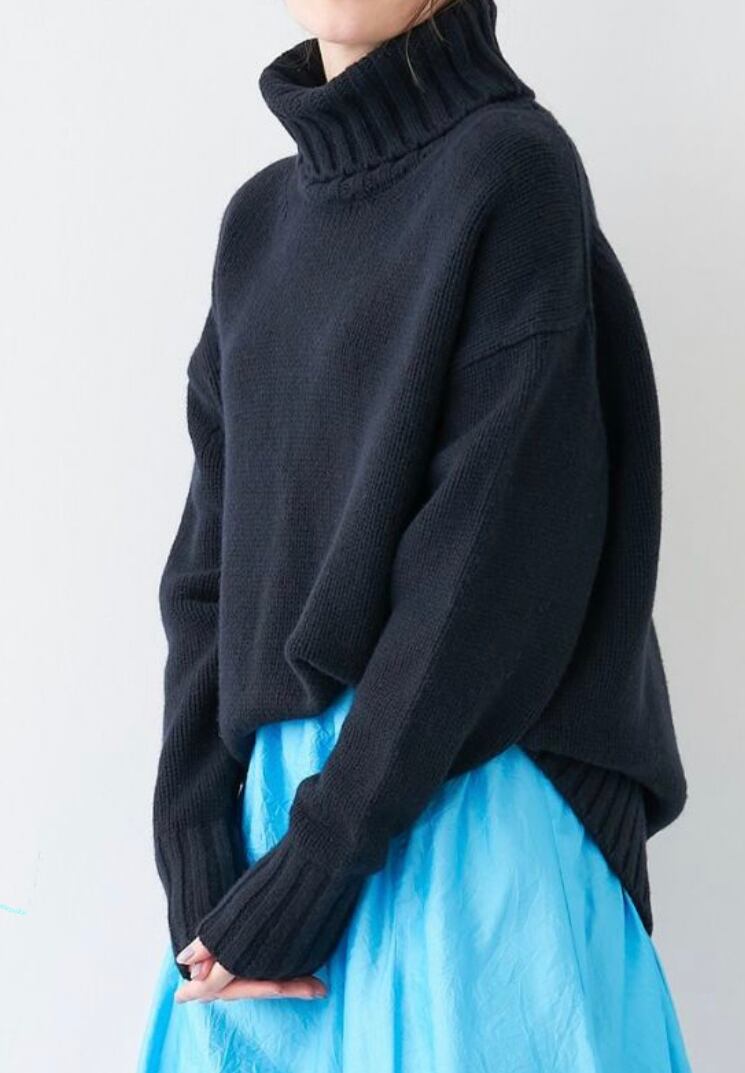 ゆったりとしたリラックス感のあるシルエットで、タートルネック部分は優しく首回りをホールドし、小顔効果もある優秀ニットです。
