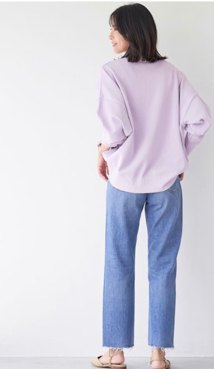 ドライタッチで肌にまとわりにくくさらりとした着心地です。裏毛に比べて綺麗な印象に。