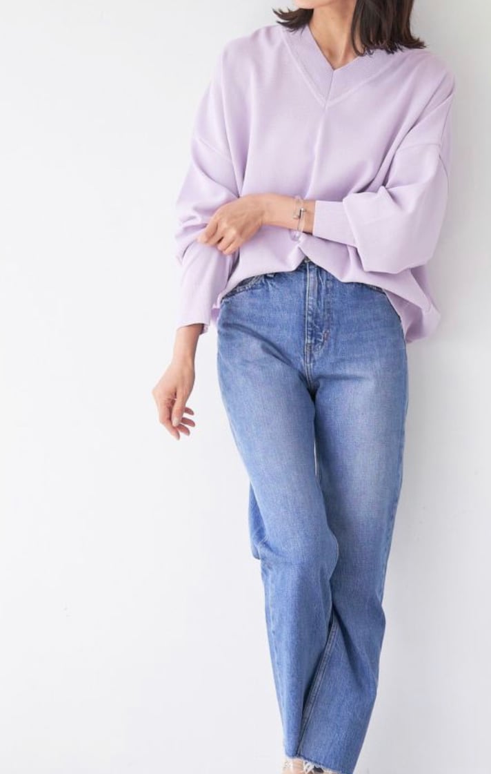 Vネックの襟ぐりが女性らしさを演出しカジュアル過ぎず品良く着て頂けます。