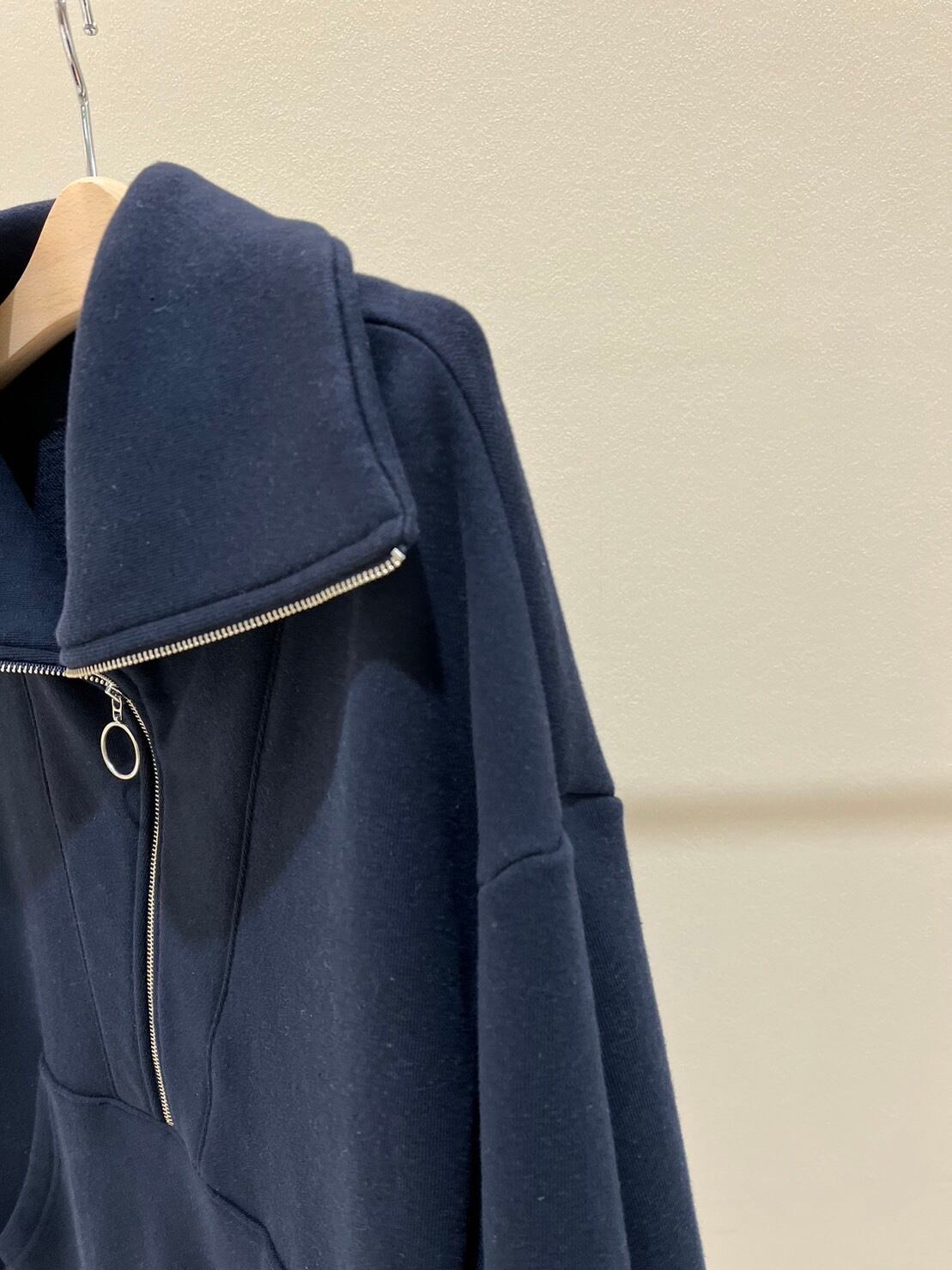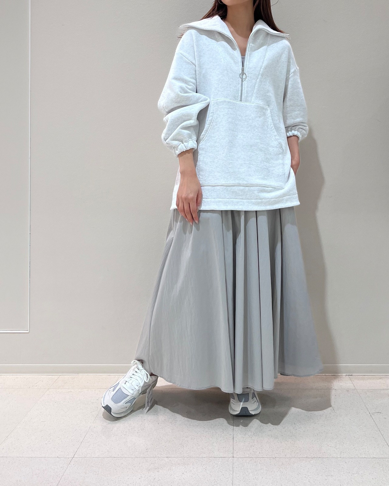 フロントのジップデザインがスポーティな印象ですがサイドスリットにより抜け感もプラス。