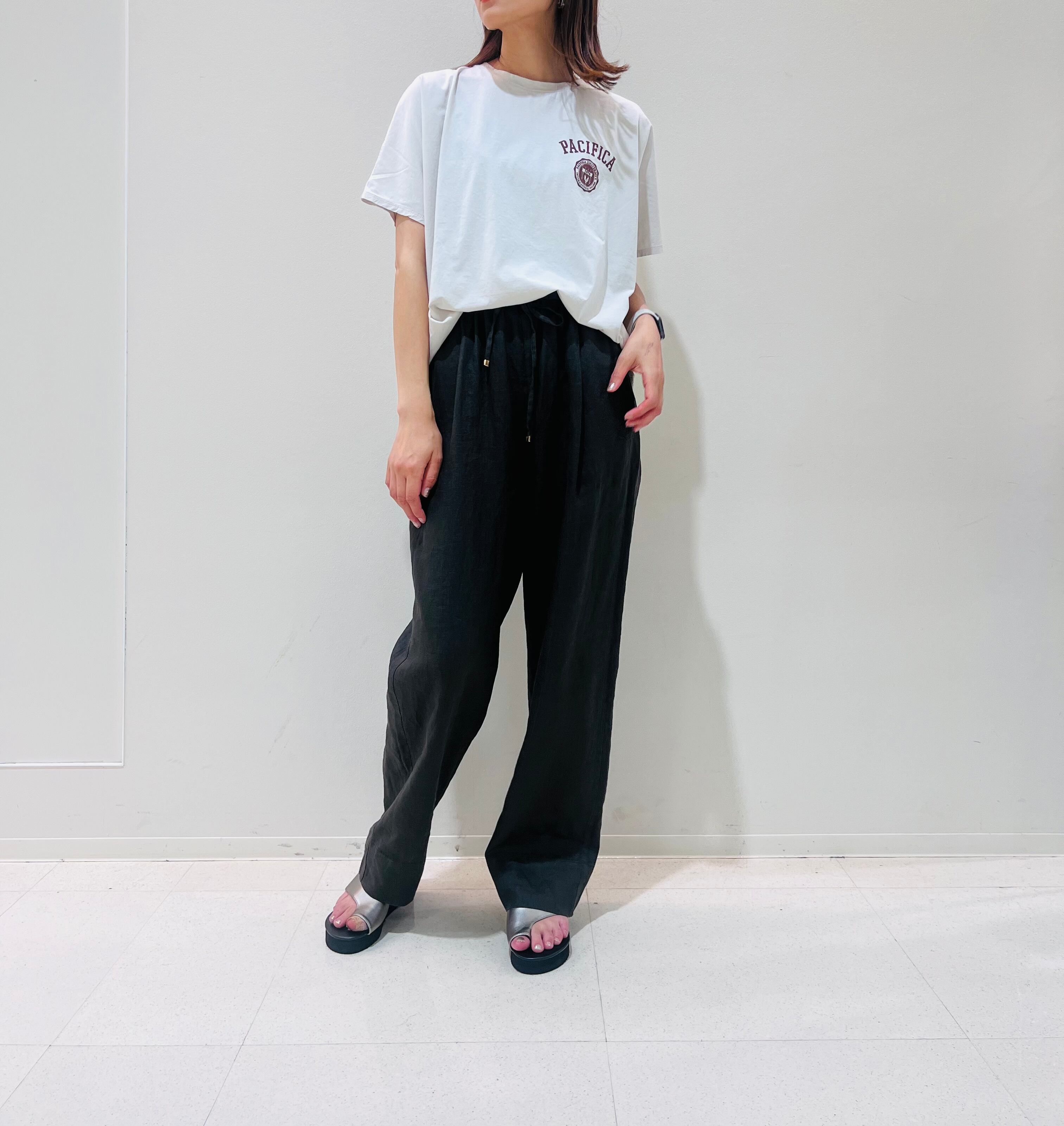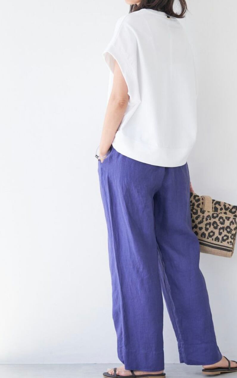 裏無しの仕様で、素材の涼しく軽い風合いを楽しめます。程よくゆったりとしたサイズ感は体型問わず、どんなコーディネートにもはまる万能パンツです。