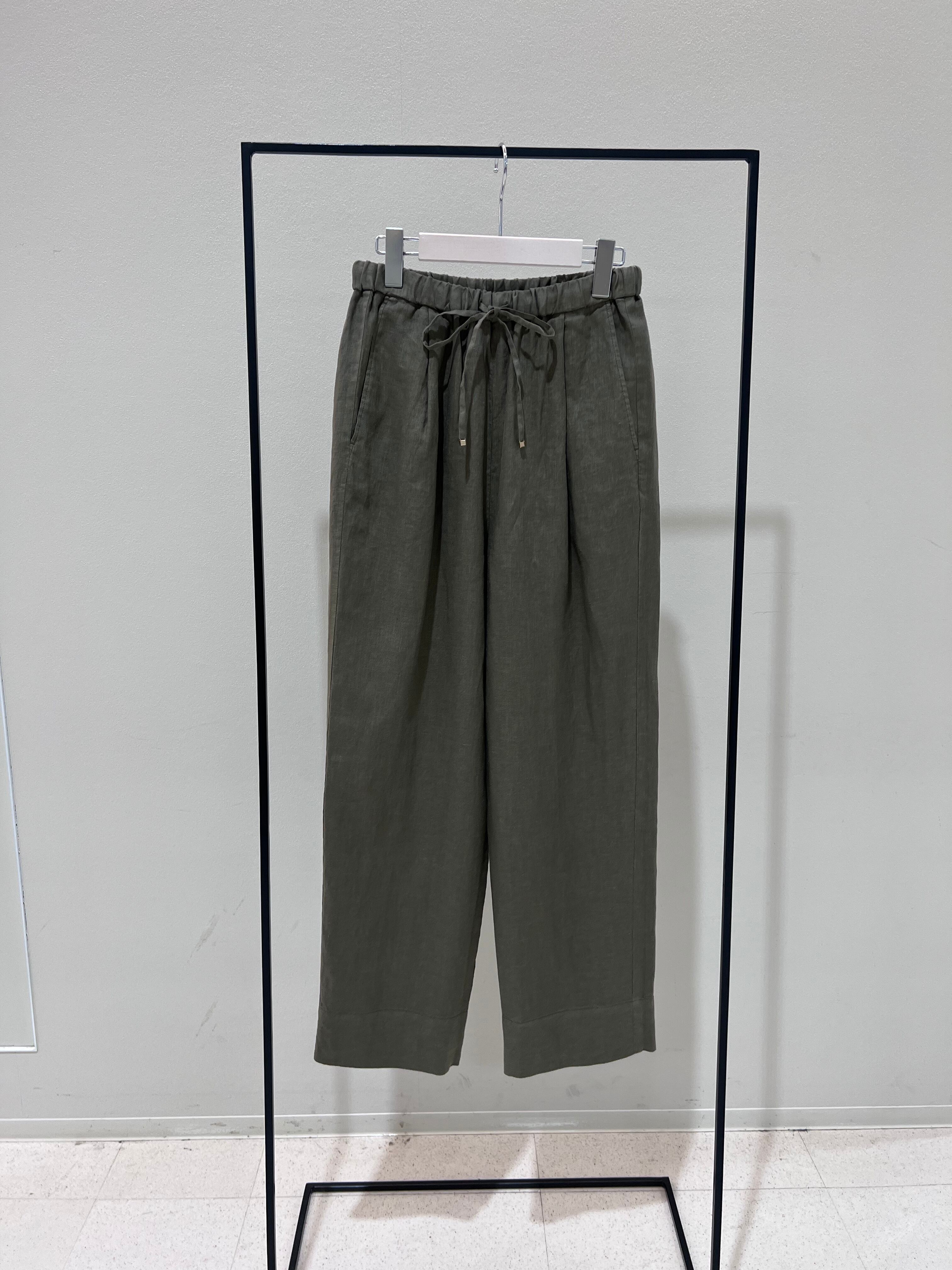 リネン100%素材を製品染め、フィム加工(麻の繊維を砕く加工)を施すことで柔らかな独特な風合いになり、履き心地抜群のイージーパンツです。
