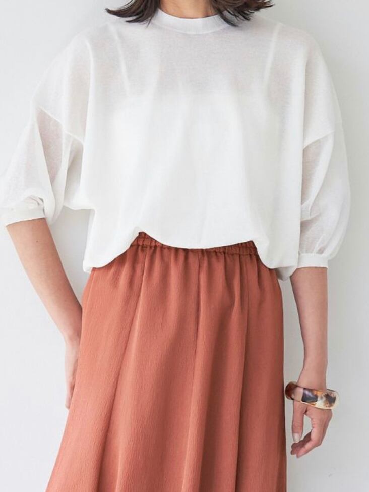 パンツやスカートとも合わせやすいサイズ感にしています。ブラウス感覚で着れる今年らしい一枚です。