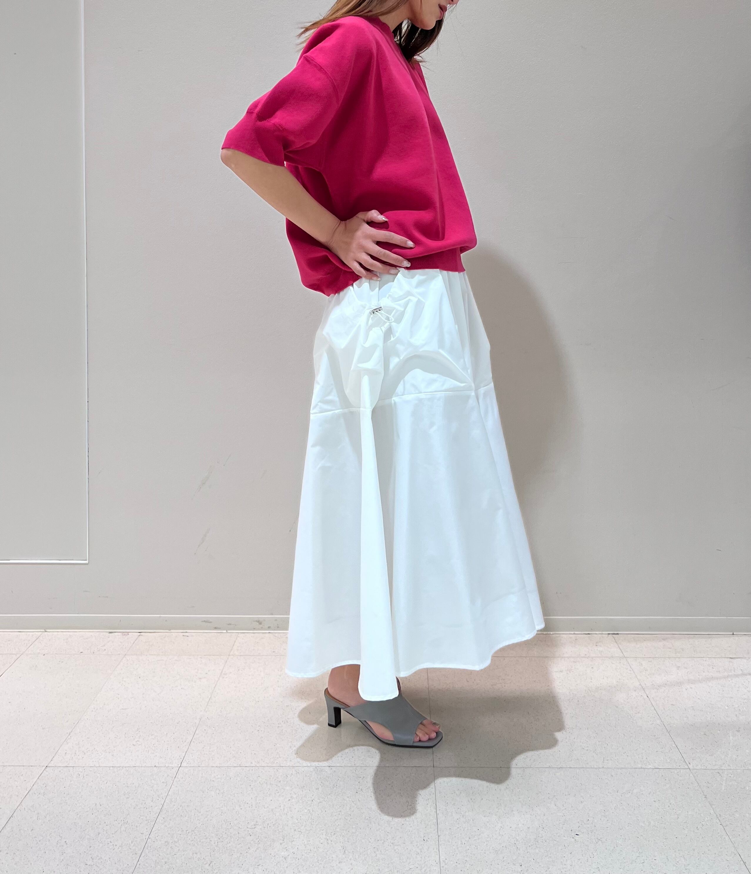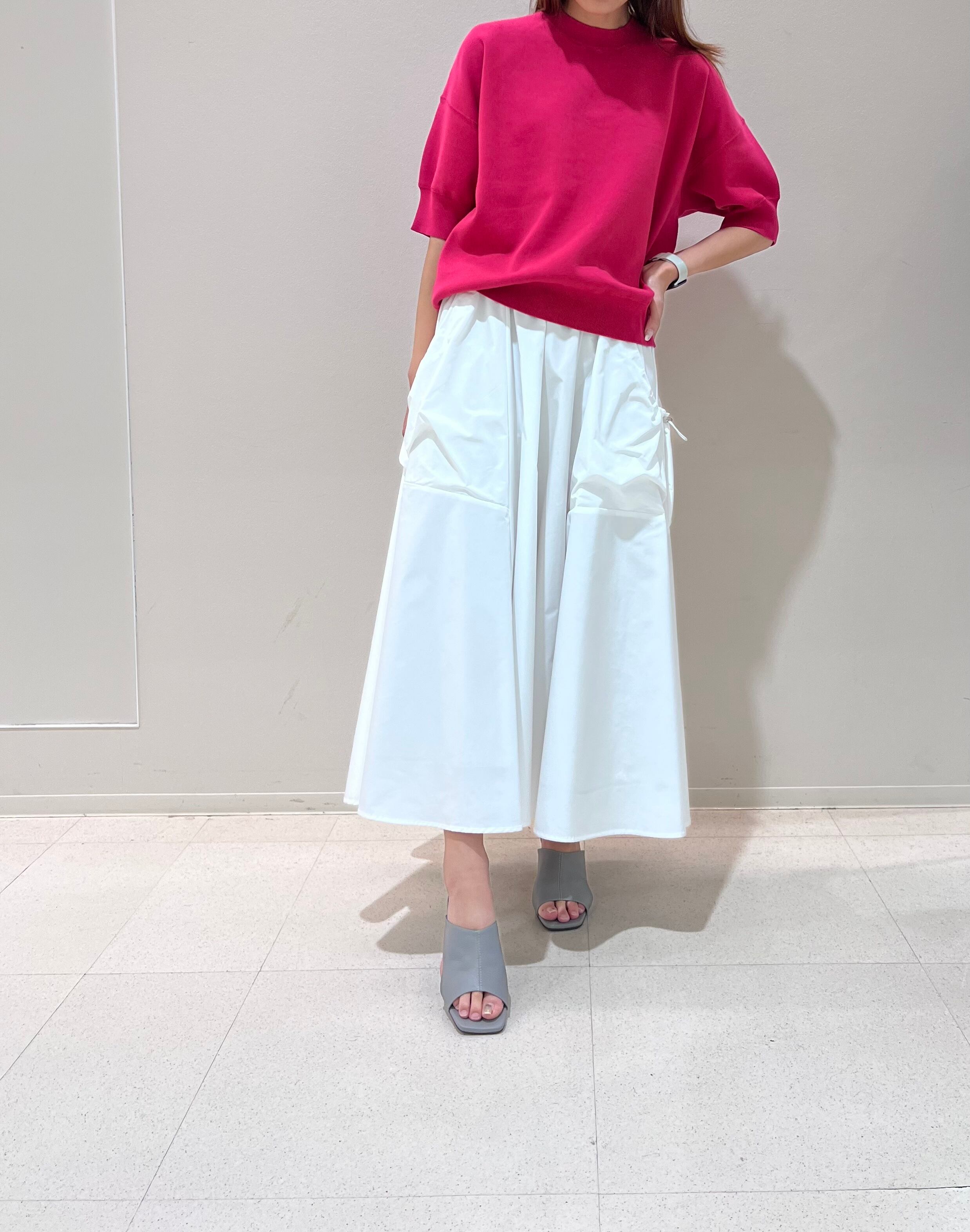スムースの編み地にすることで適度な厚みを持たせ体のラインを拾わないようにしています。スウェット感覚で着られる着心地の良さがありながらもハイゲージで編んでいるのでカジュアルになり過ぎず品よく着て頂けます
